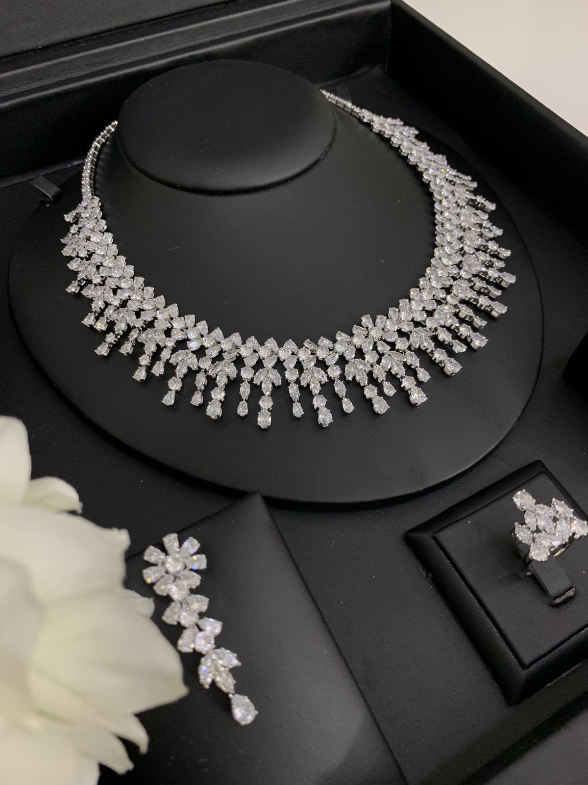 طقم اكسسوار فاخر رسمة الماس يعطي اطلالة مميزة للعروسز