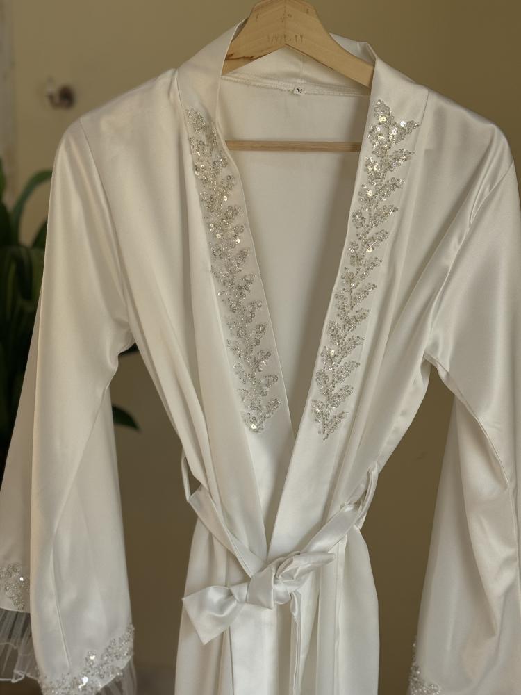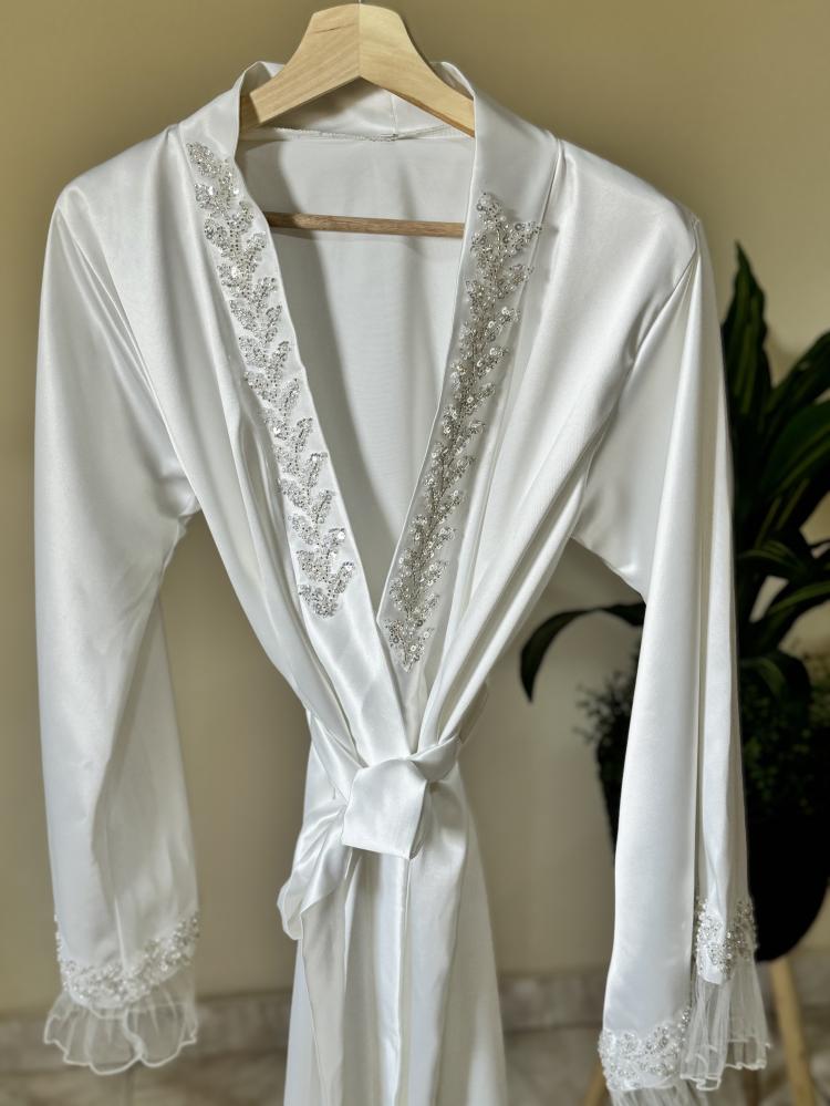 تقريبا كل عروسه تقتني هذا الروب ( أو بجامة ) لأنه مناسب و مريح اللبس عند عمل تصفيف الشعر في الصالون و الميك اب .