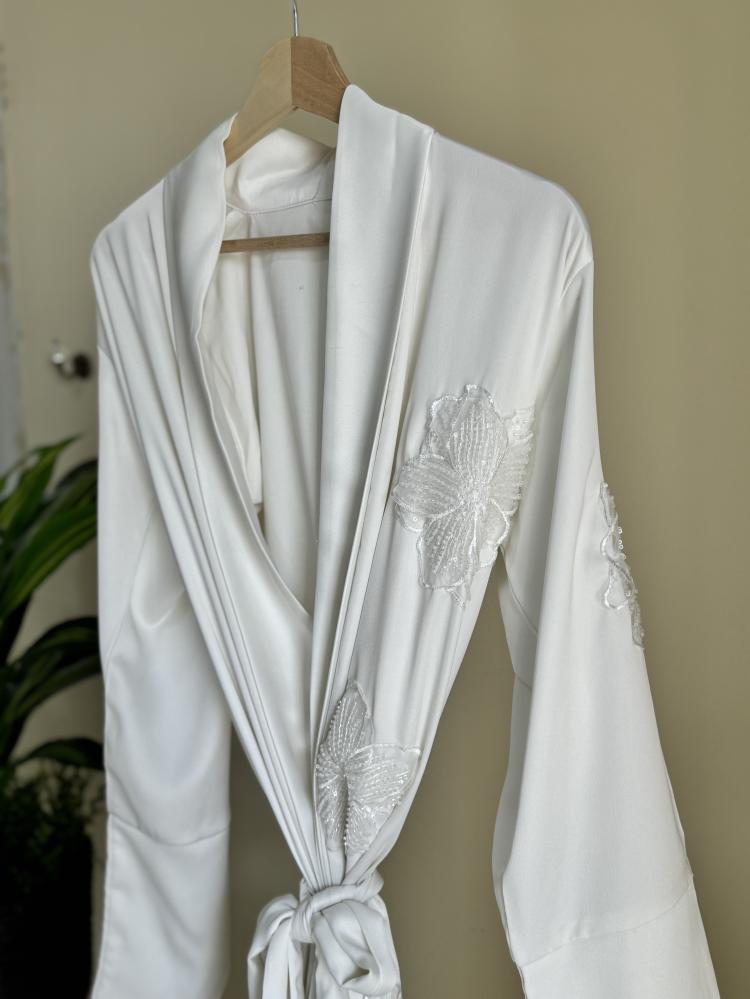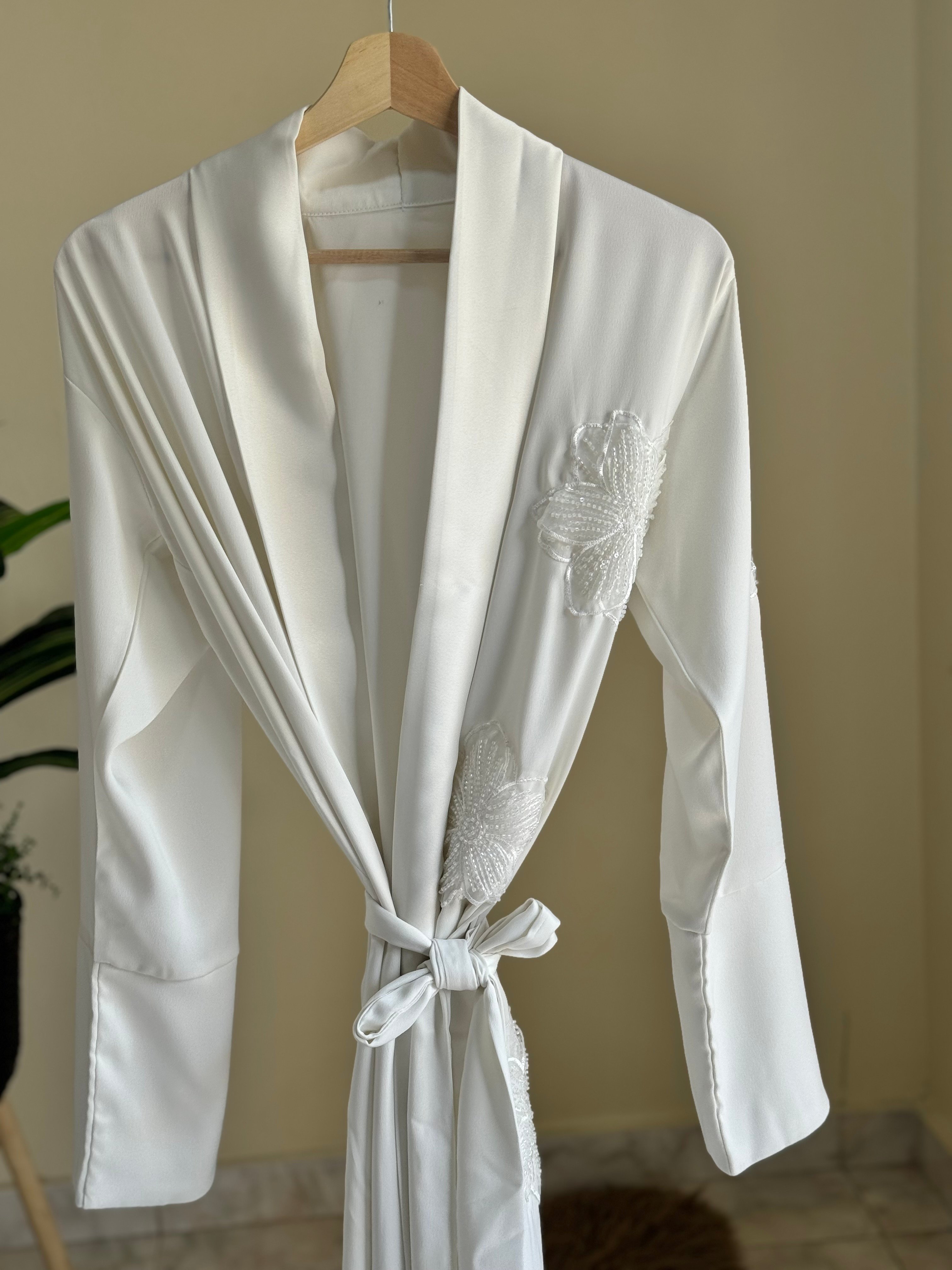 تقريبا كل عروسه تقتني هذا الروب ( أو بجامة ) لأنه مناسب و مريح اللبس عند عمل تصفيف الشعر في الصالون و الميك اب .