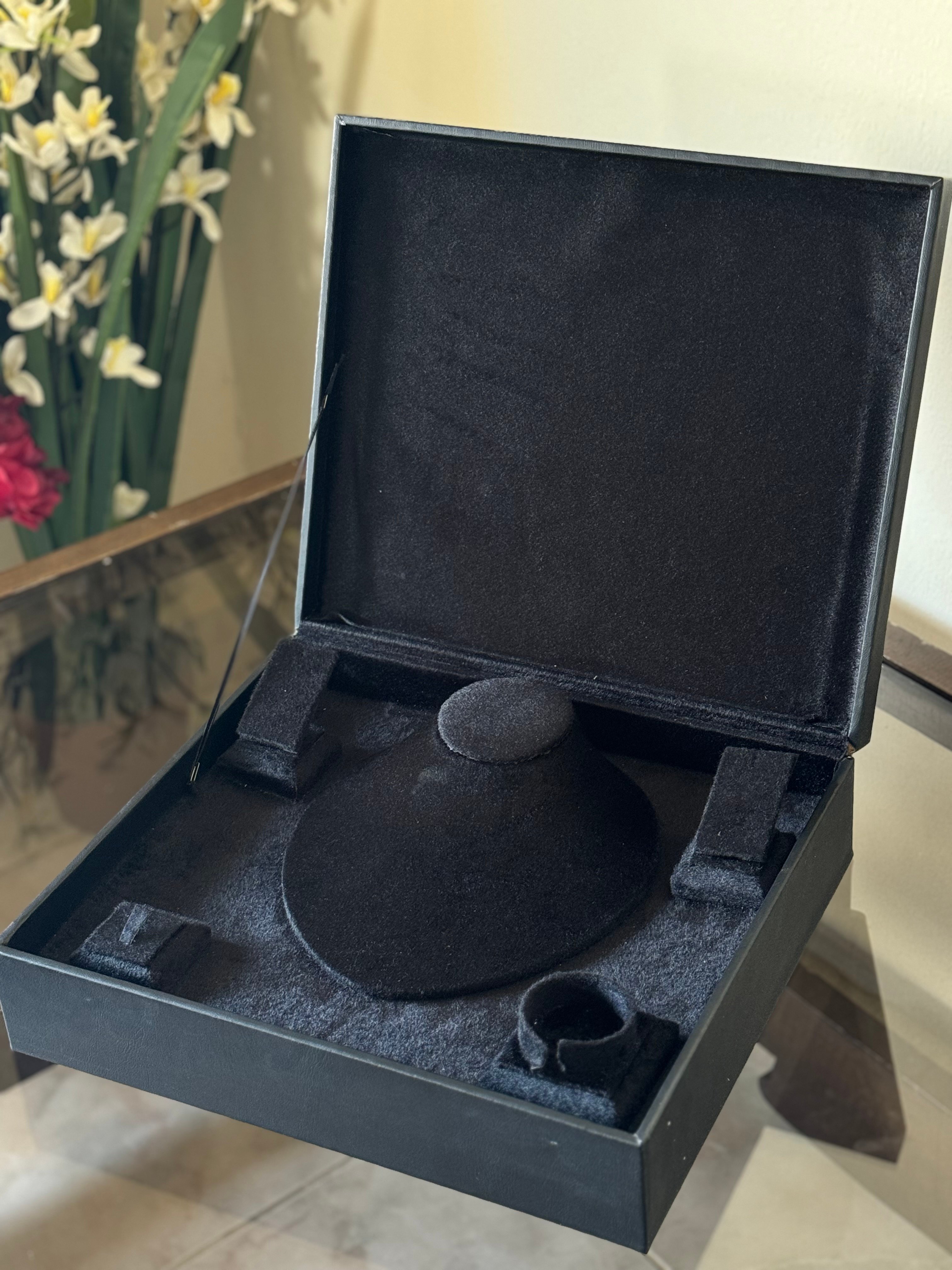صمم هذا البكس بطريقة فريدة مع غالق في المنتصف . كما يمكن تزين الصندوق بالحروف حسب الرغبة .