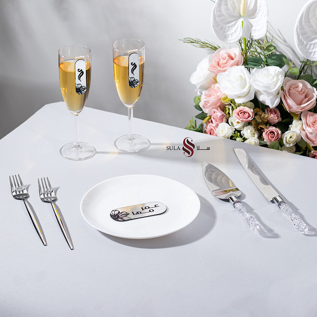 - يحتوي على ( كاستين - شوكتين - سكين و حامل كيك - صحن )