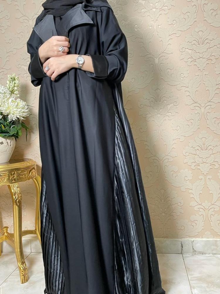 عبايه أنيقه من الكريب العملي بتصميم بليزر وبكسرات من الجوانب.