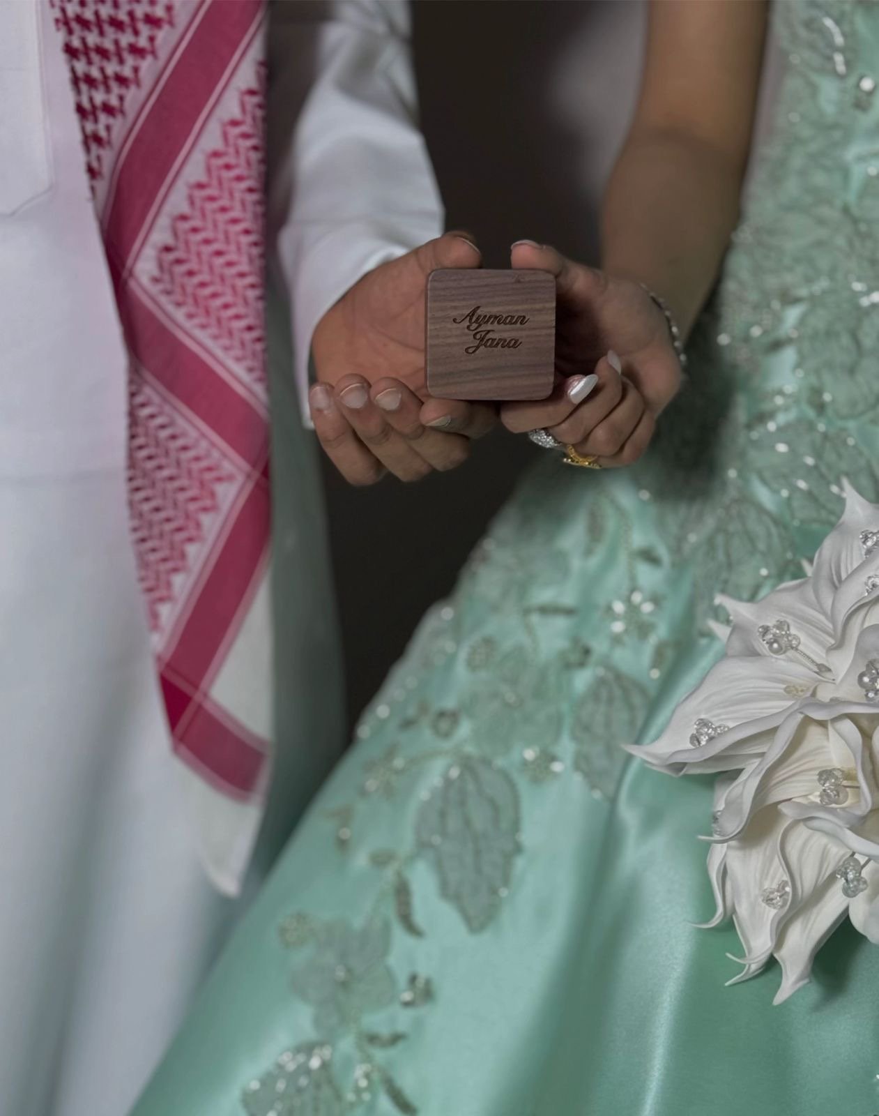 منقوش عليه اسماء العروسين .. فكرة مبتكره لتقديم و تلبيس الدبل فترة الخطوبة او حفلة الملكة و عقد القران .