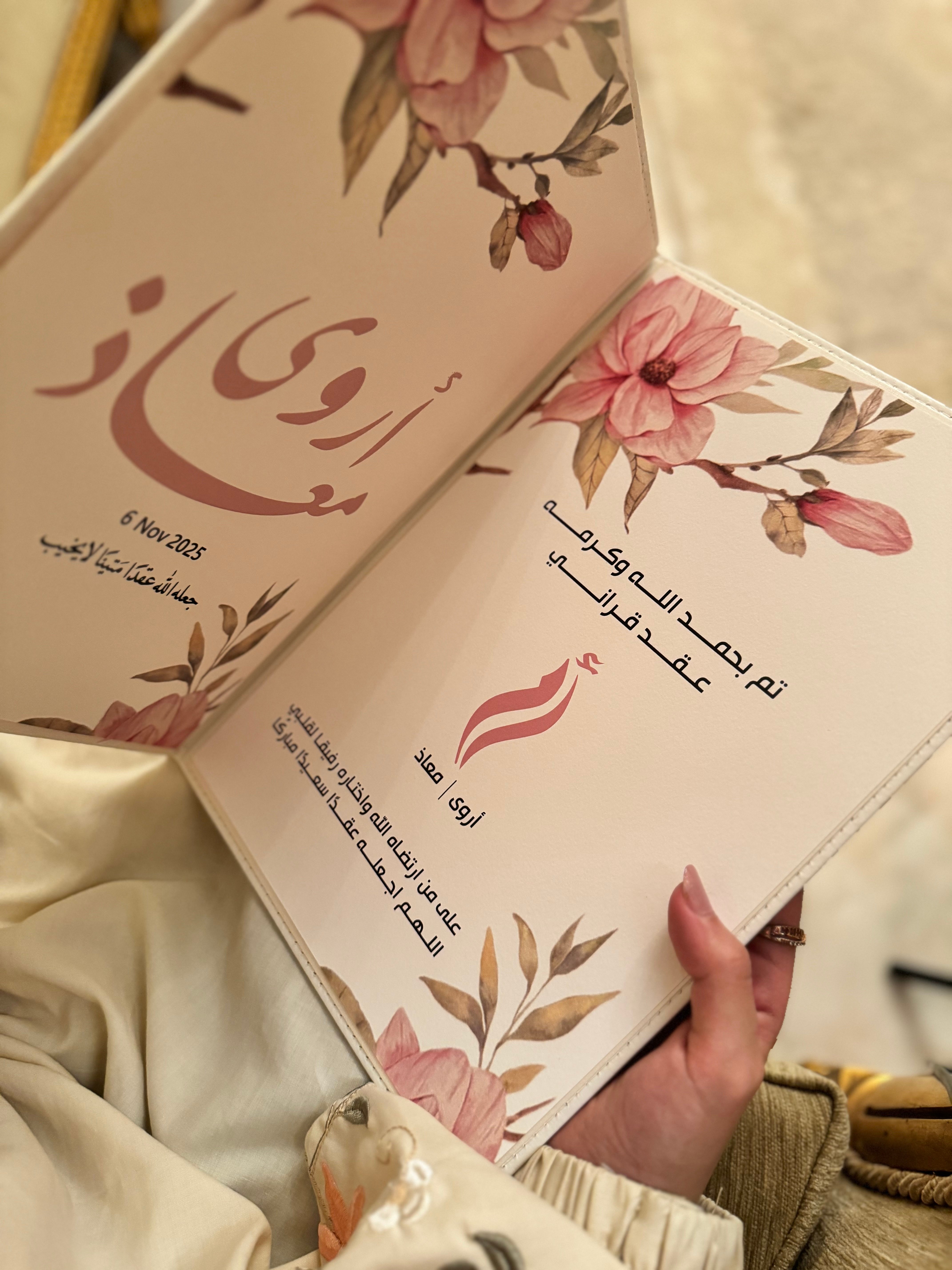 الكتاب صُمّم ليحفظ تفاصيل اليوم الأهم في حياة كل عروس، ويجمع بين الفخامة والبساطة ليكون تذكارًا يدوم لسنوات طويلة.