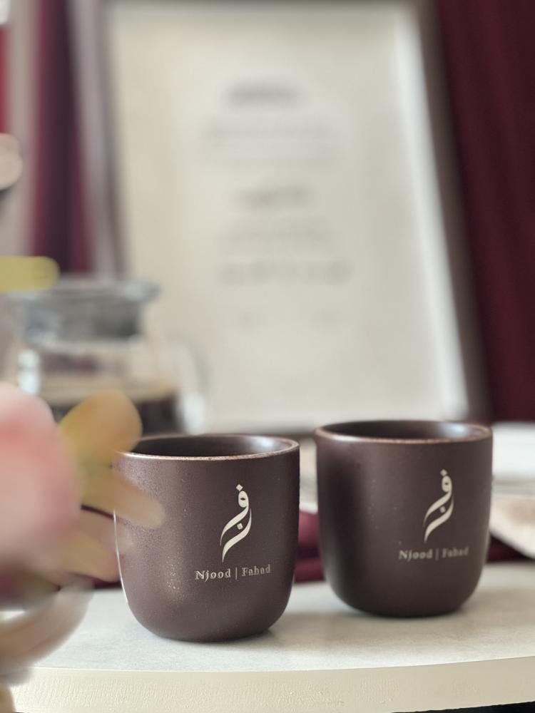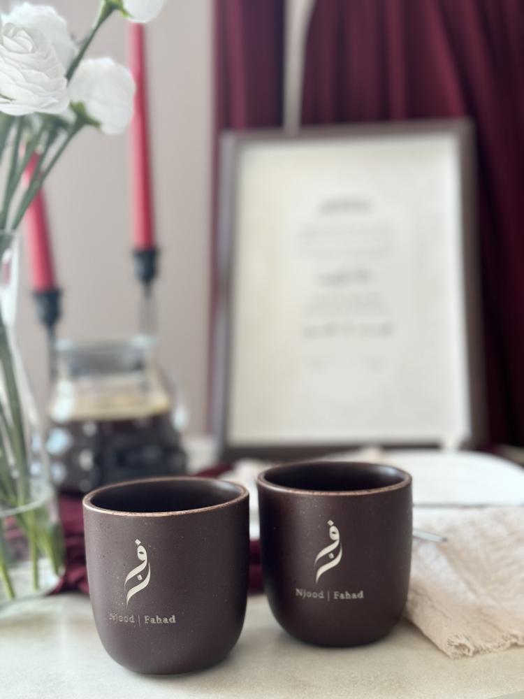 كوبين قهوة محفور بأسماء العروسين – لمسة دافئة تدوم للأبد