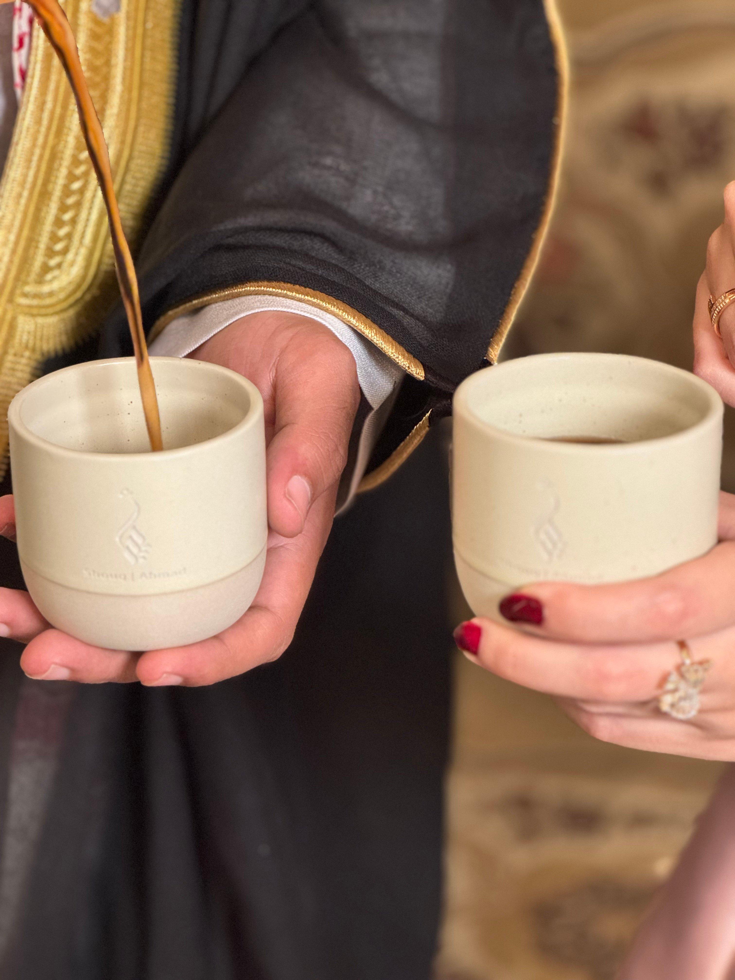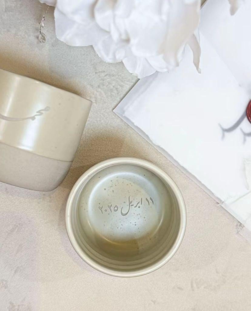 ابدأوا مسائكم المميز بقهوة تحمل معاني الحب. كوب قهوة أنيق محفور بأسماء العرسان ليكون هدية مميزة أو تذكارًا خالدًا ليومكم الخاص.