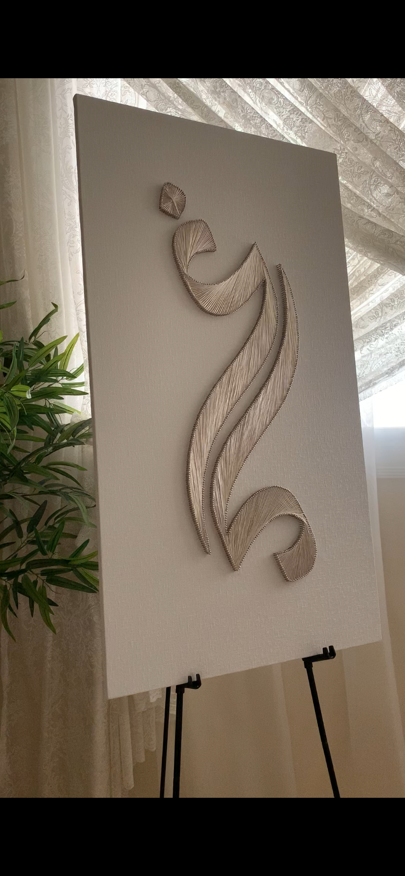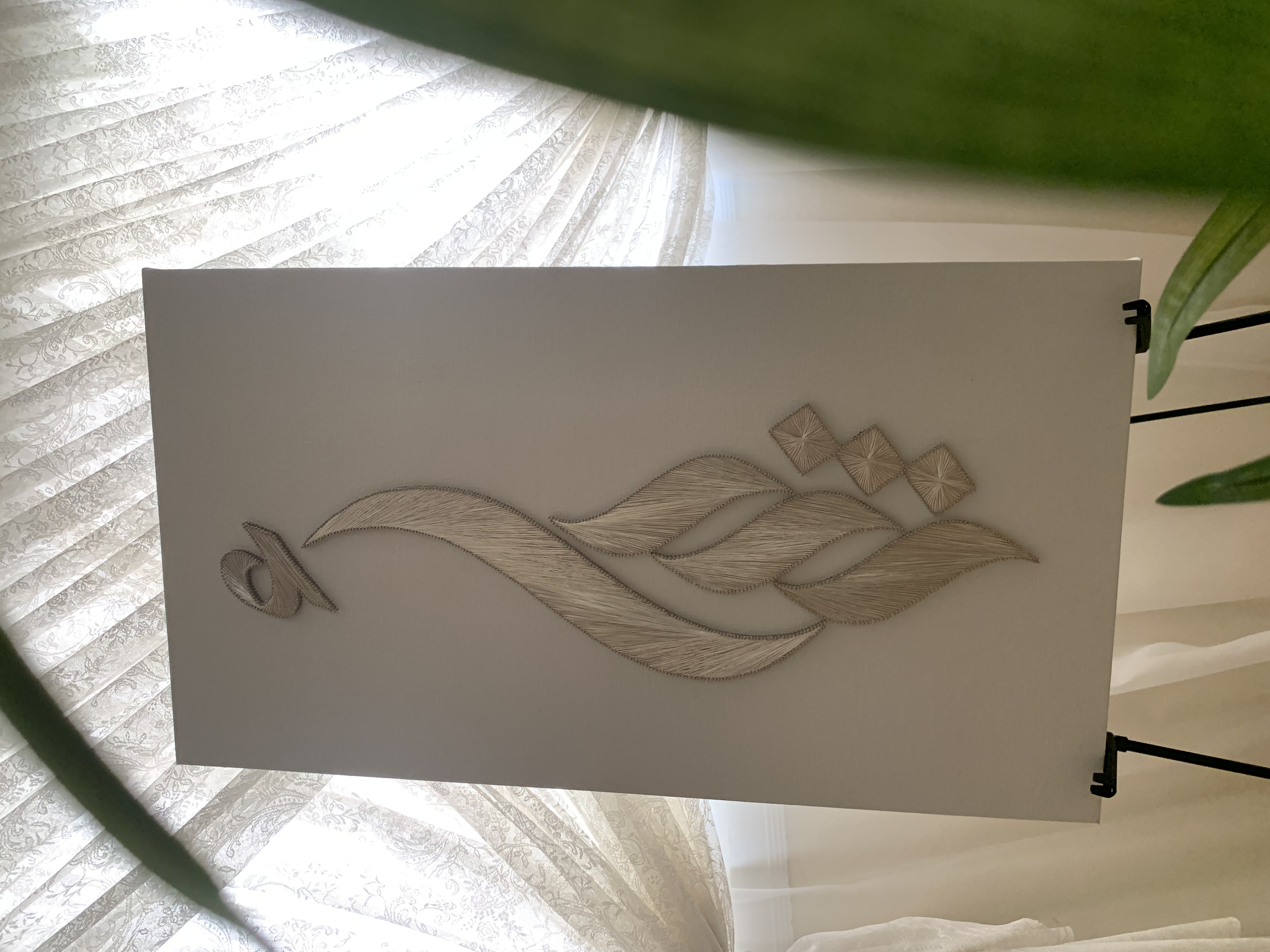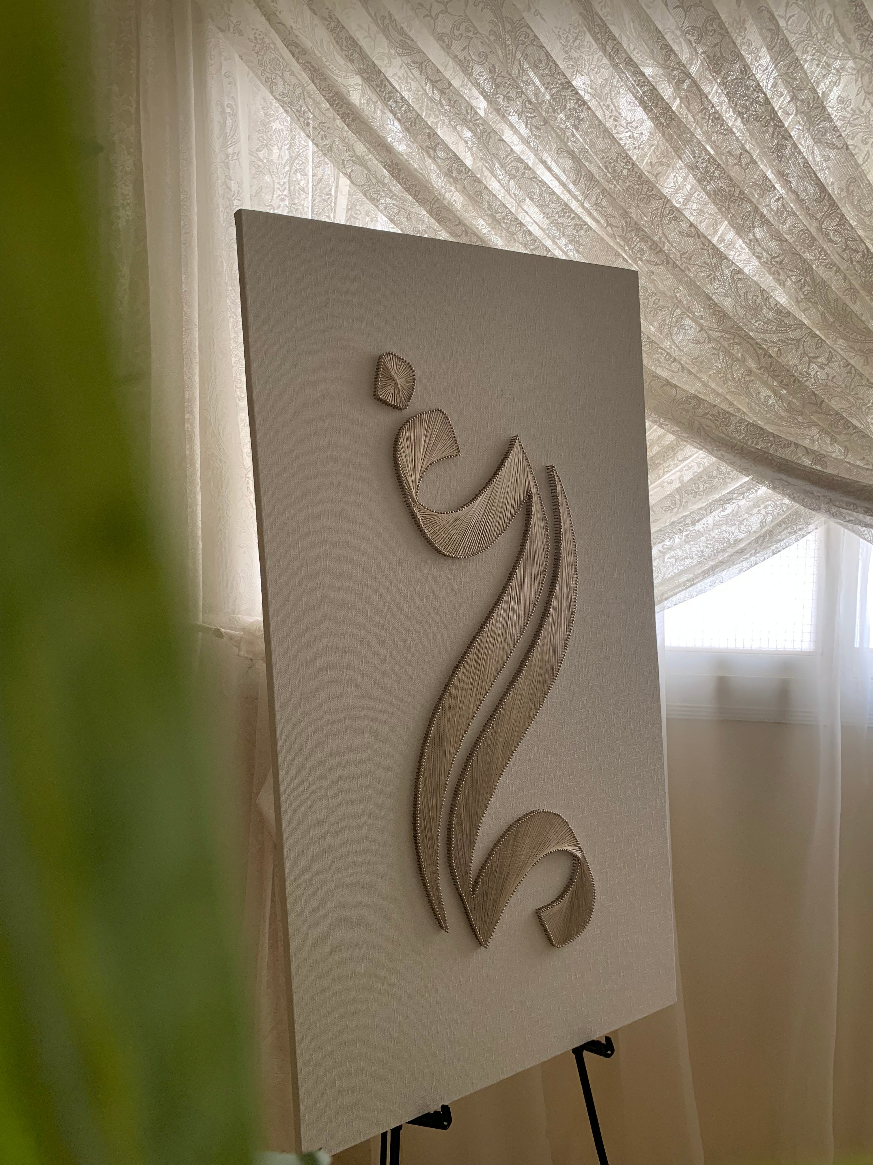 أضيفي لمسة فنية فاخرة لمناسبتك أو قدمي أجمل هدية للعرايس مع لوحة خيوط يدوية مصممة بأسماء العروسين. عن الفن الراقي يدمج بين البساطة والإبداع، وتتجسد فيه الحروف بخيوط مشدودة بدقة على خشب أنيق.