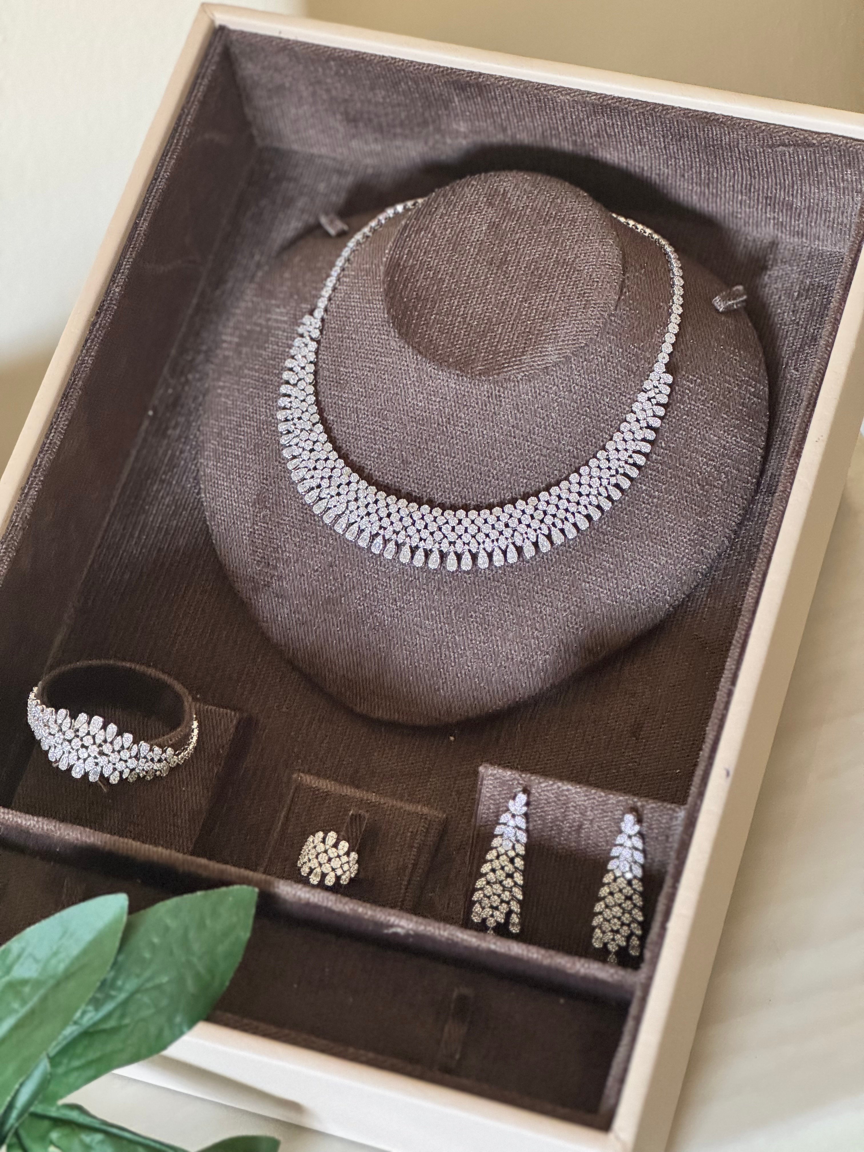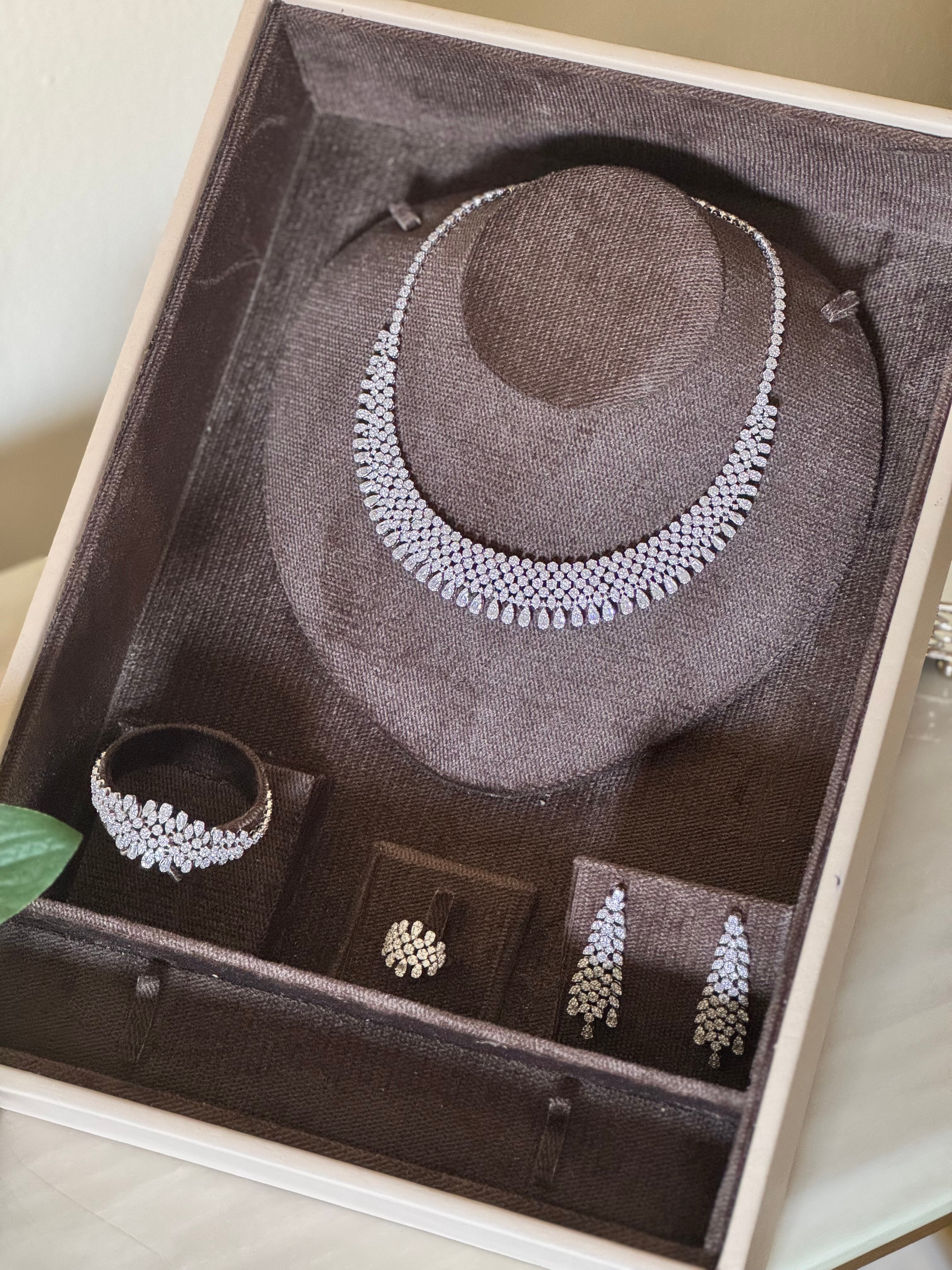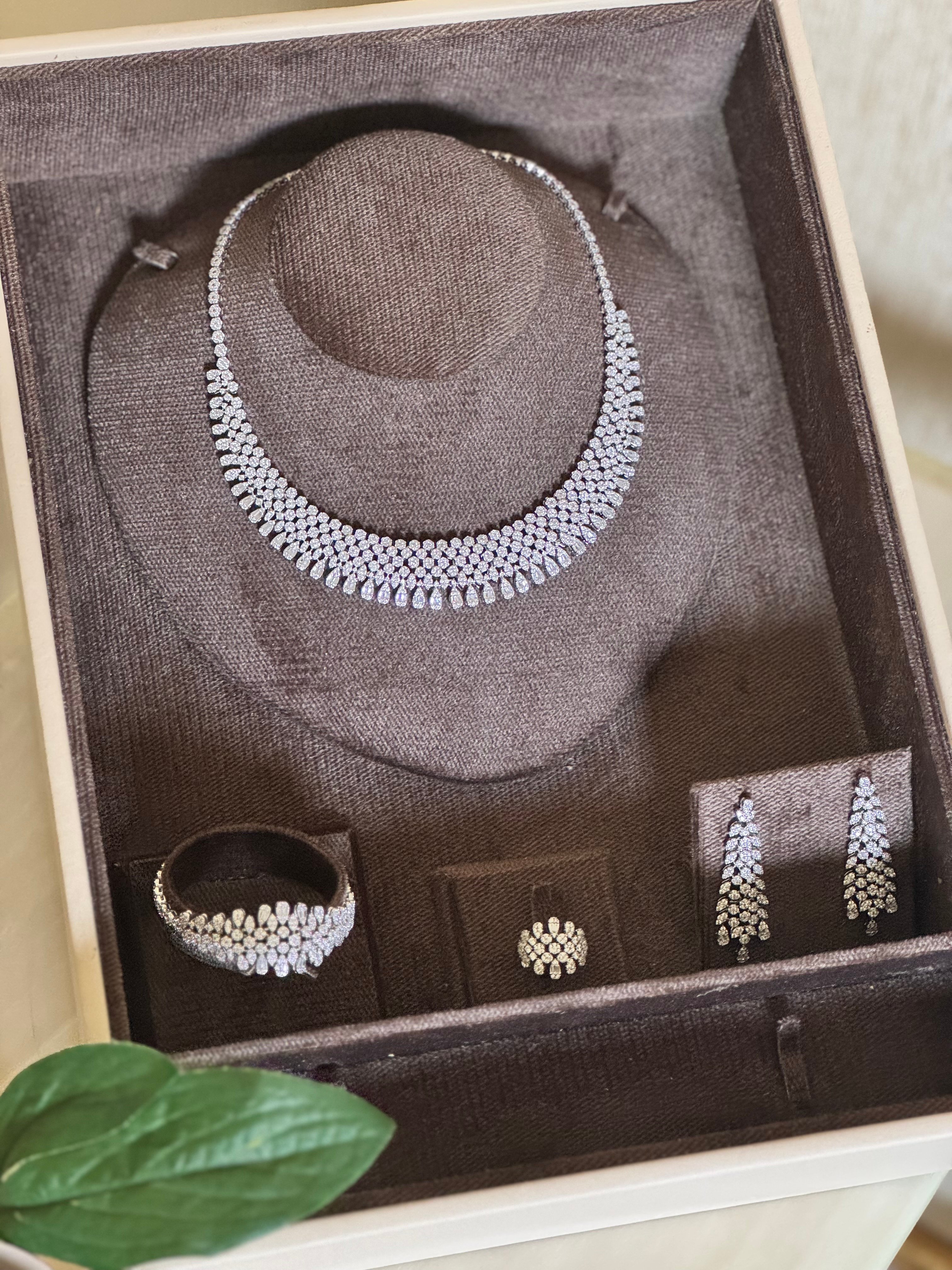طقم اكسسوار فاخر رسمة الماس يعطي اطلالة مميزة للعروسز