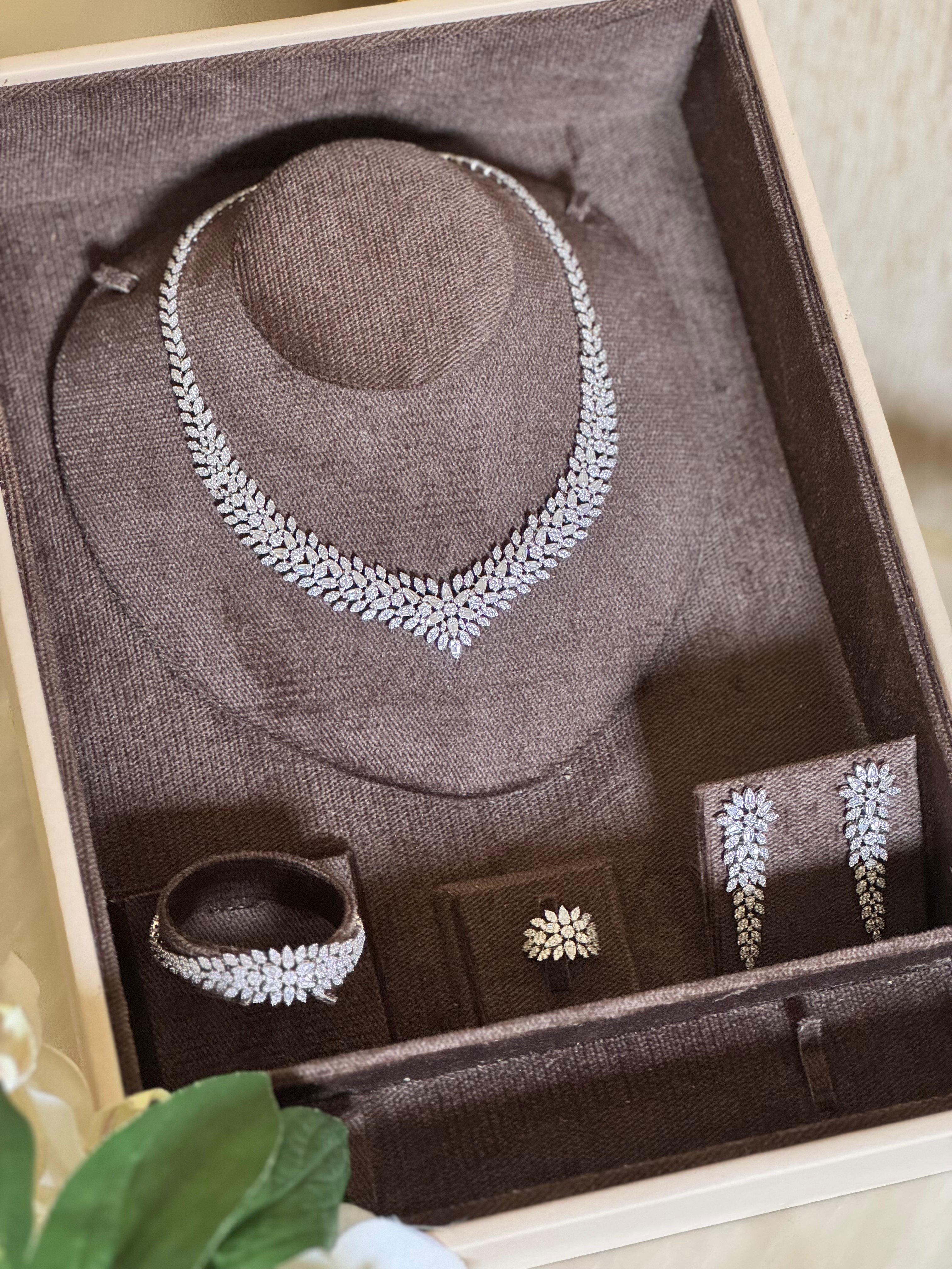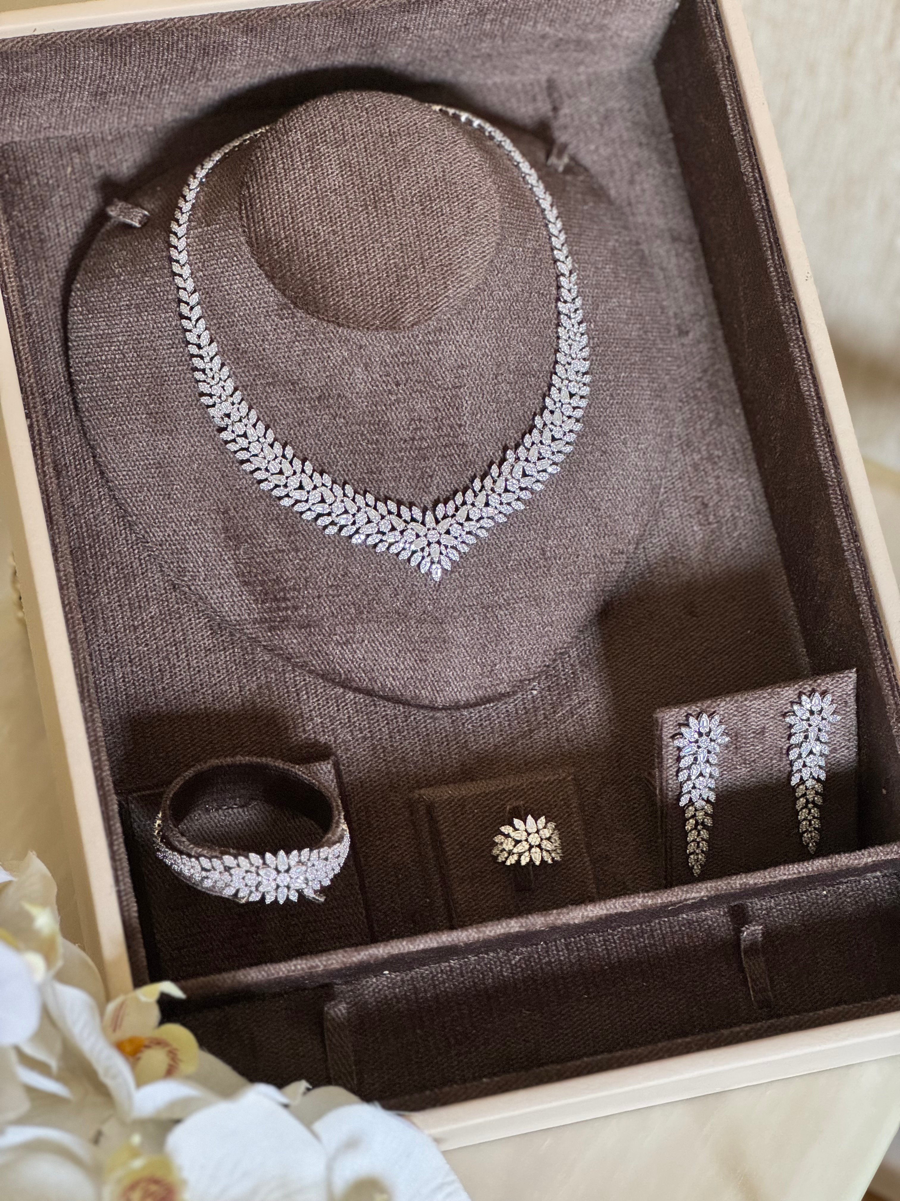 طقم اكسسوار فاخر رسمة الماس يعطي اطلالة مميزة للعروسز