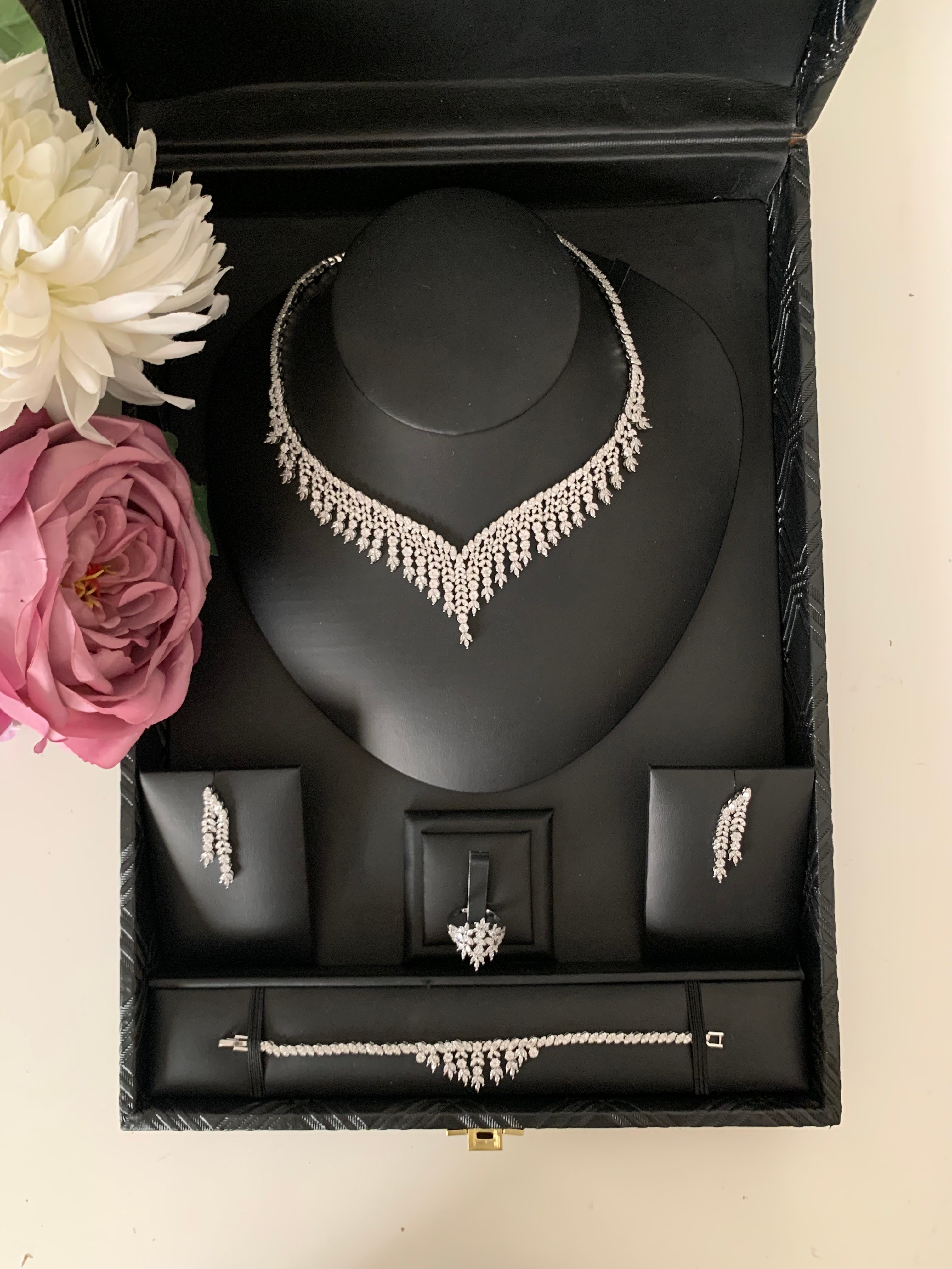 طقم اكسسوار فاخر رسمة الماس يعطي اطلالة مميزة للعروسز