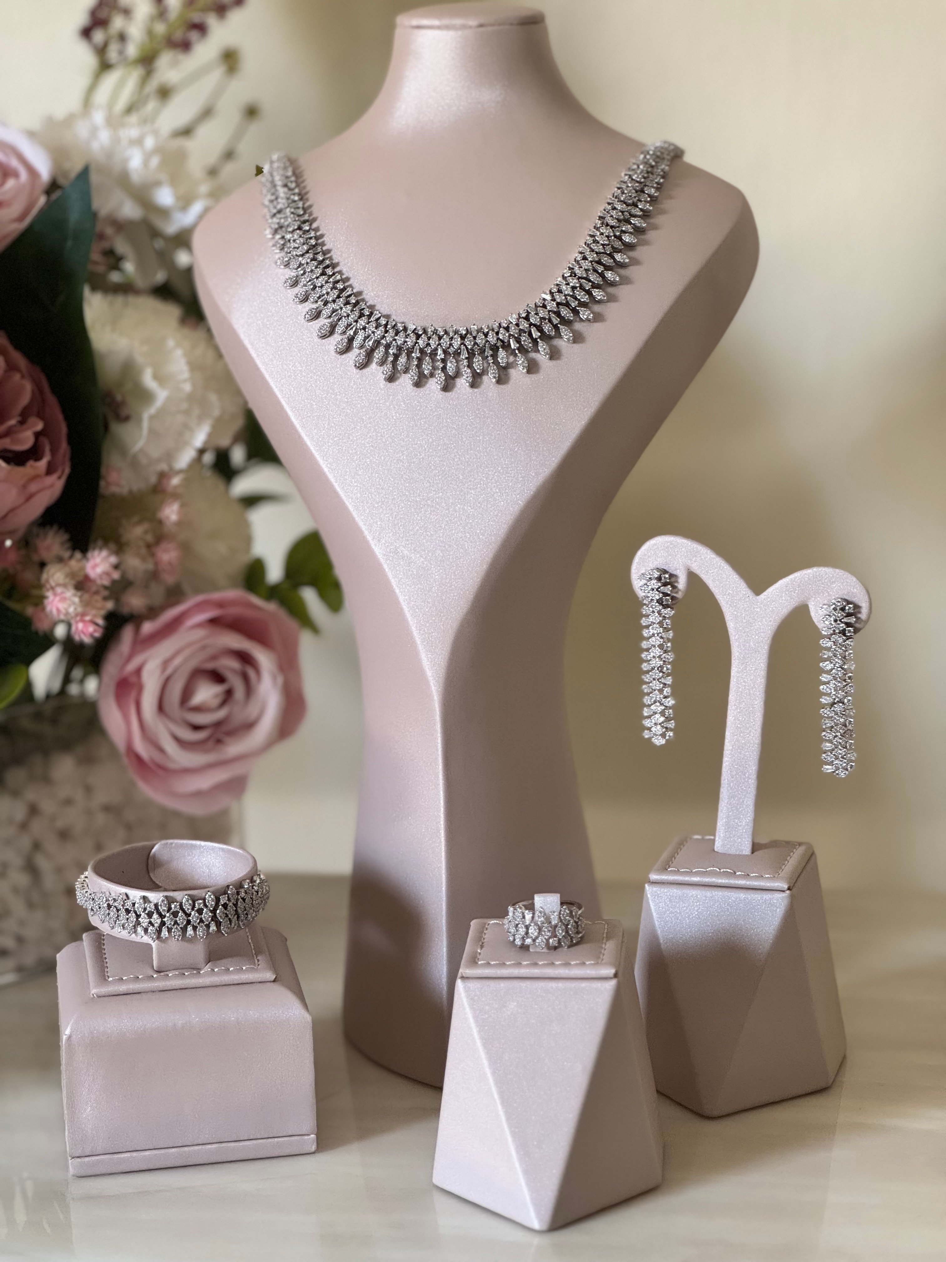 طقم اكسسوار فاخر رسمة الماس يعطي اطلالة مميزة للعروسز