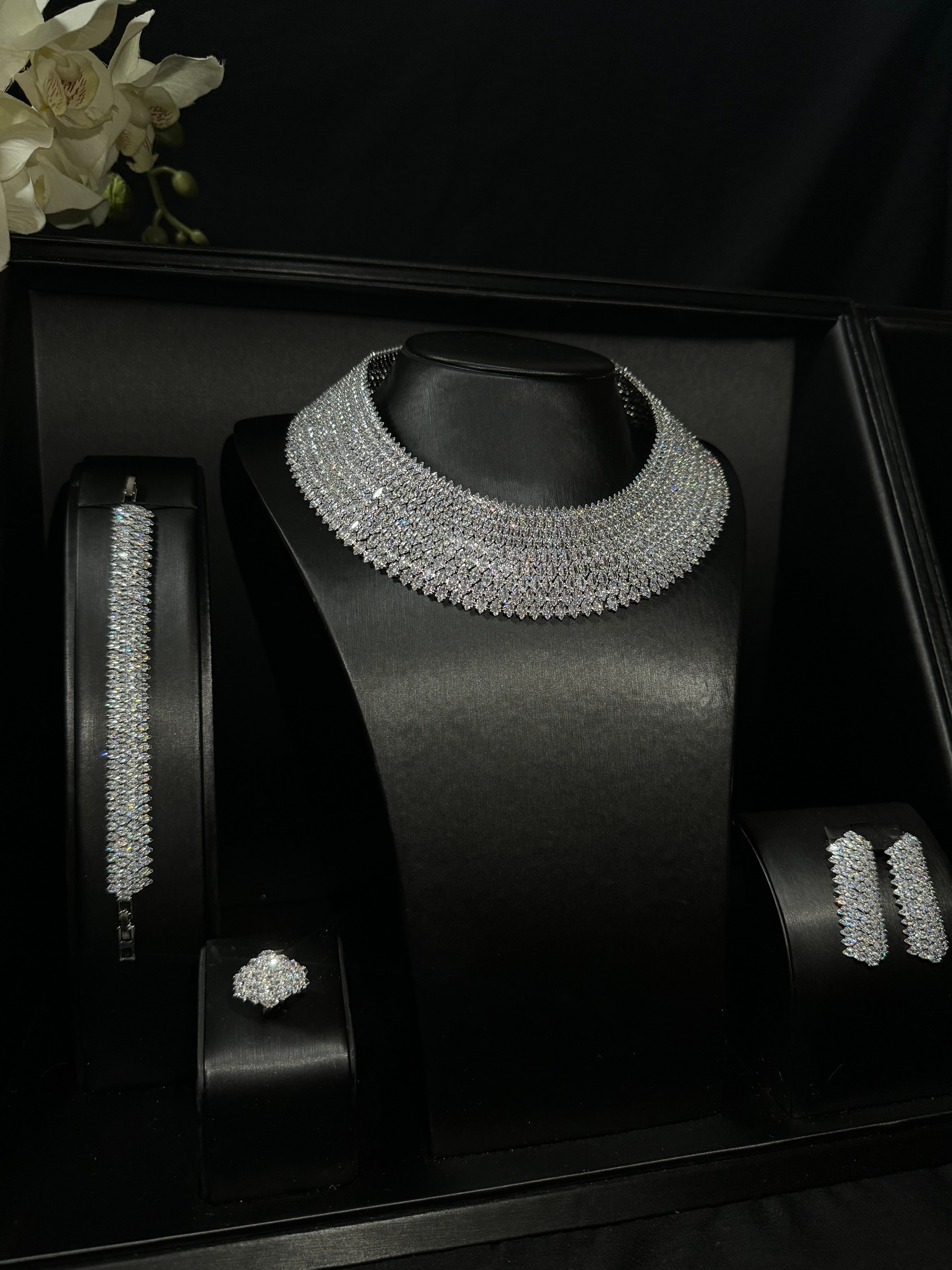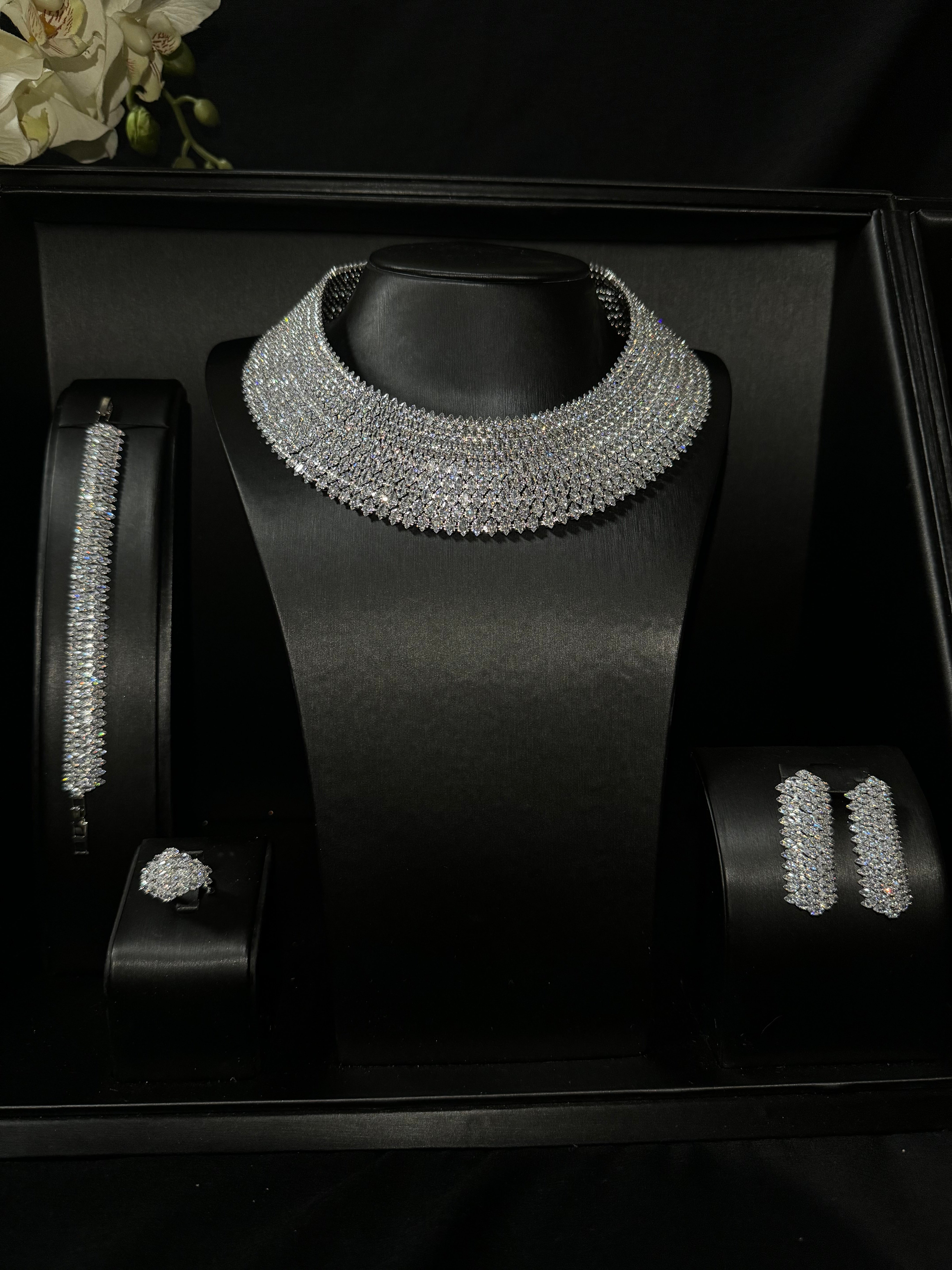 اجمل طقم من اجدد تصاميم الاطقم والذي نال على اعجاب عرايس الموسم .. تستطيعين رؤية لمعته و جودته من الصور ( لم يتم استخدام اي مؤثرات تصويرية او تعديلات )