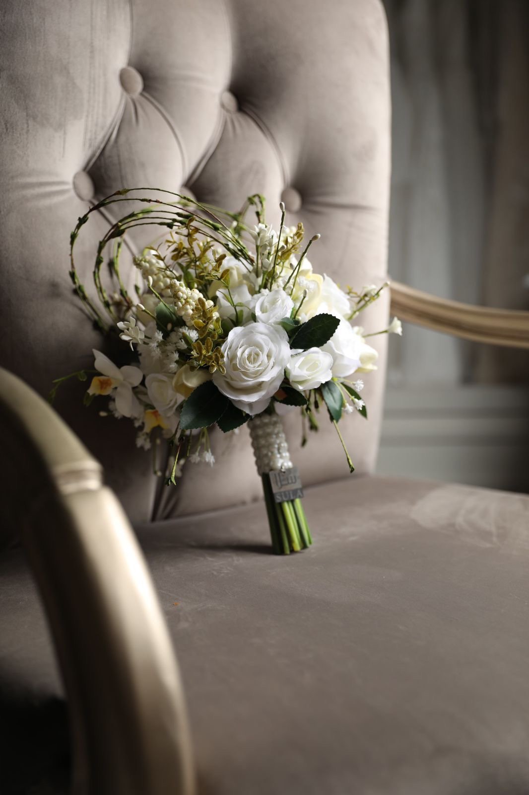 • يضاف مع المسكة تاق بإسم العروسين او الحروف ( حسب الرغبة )