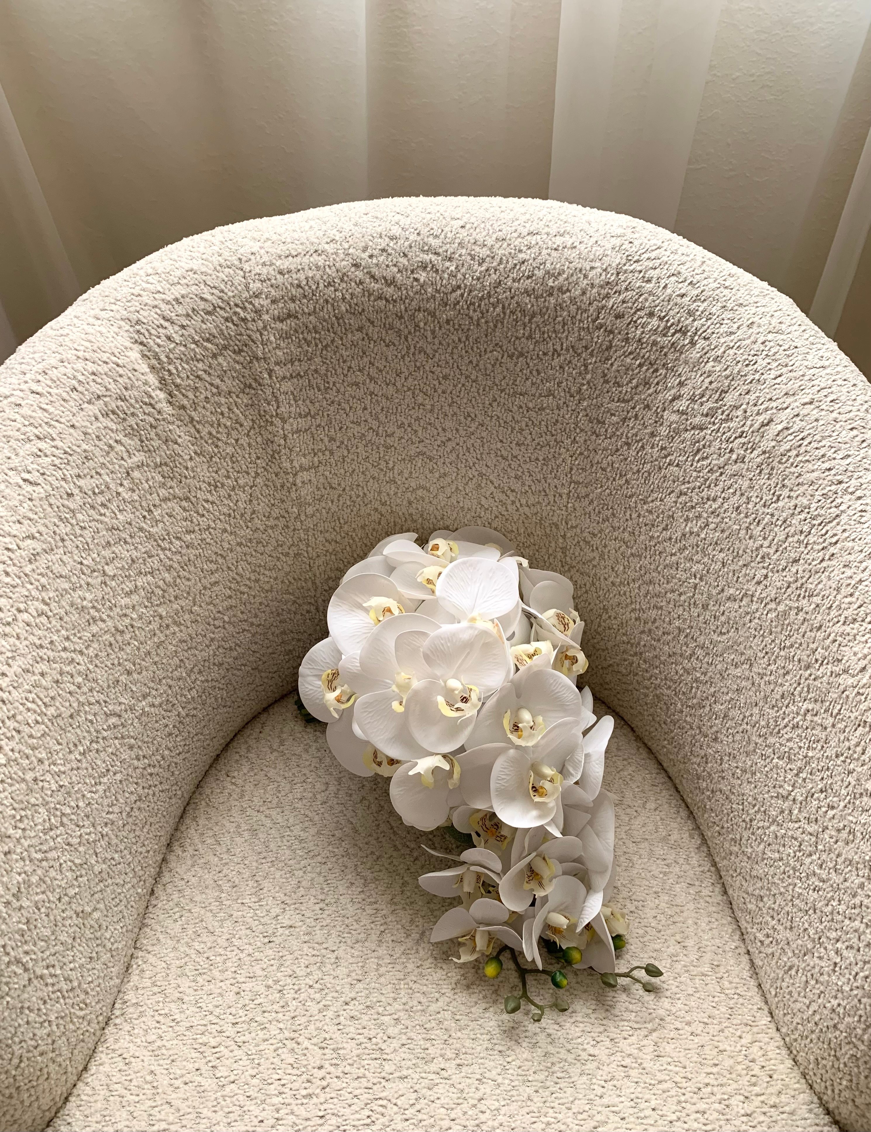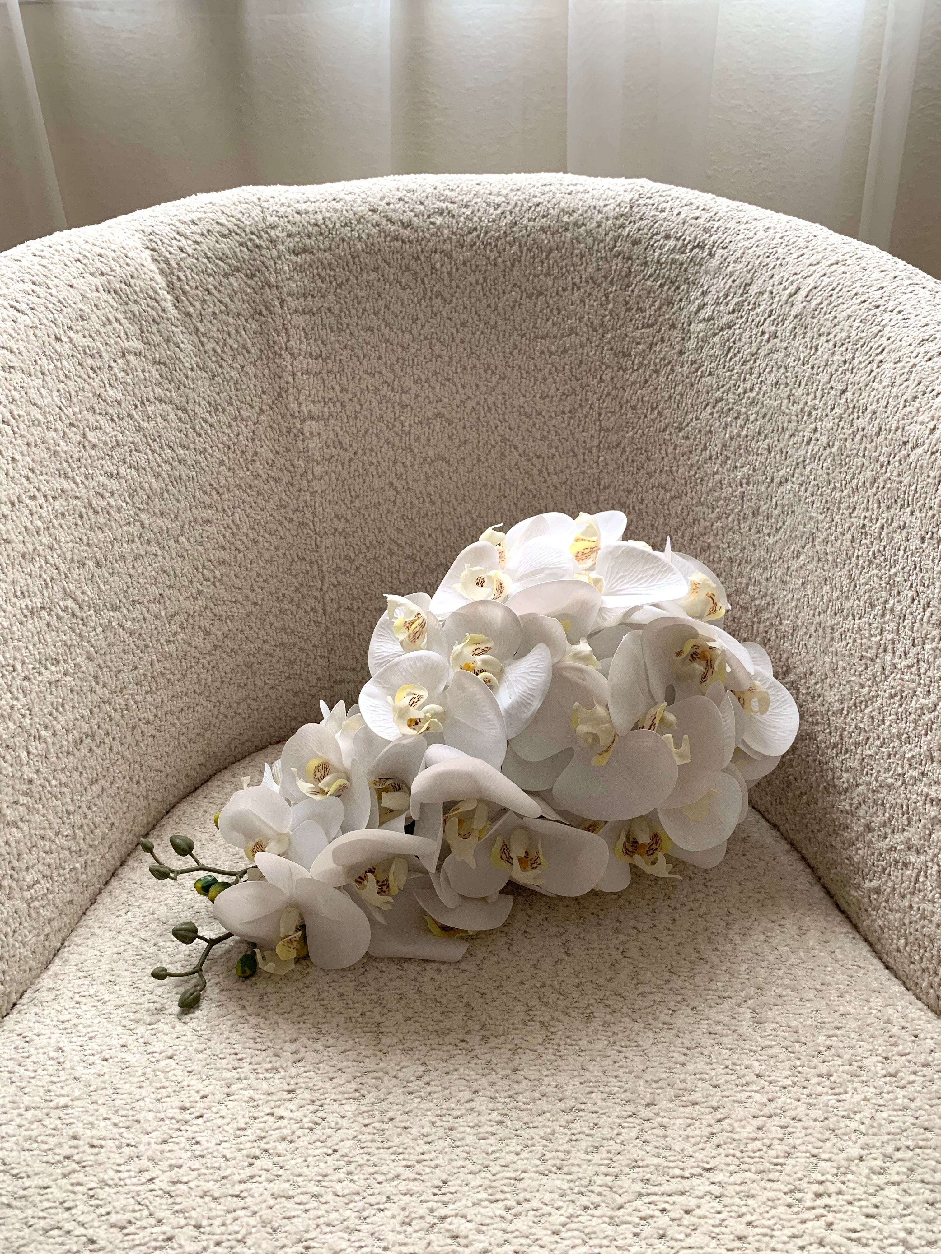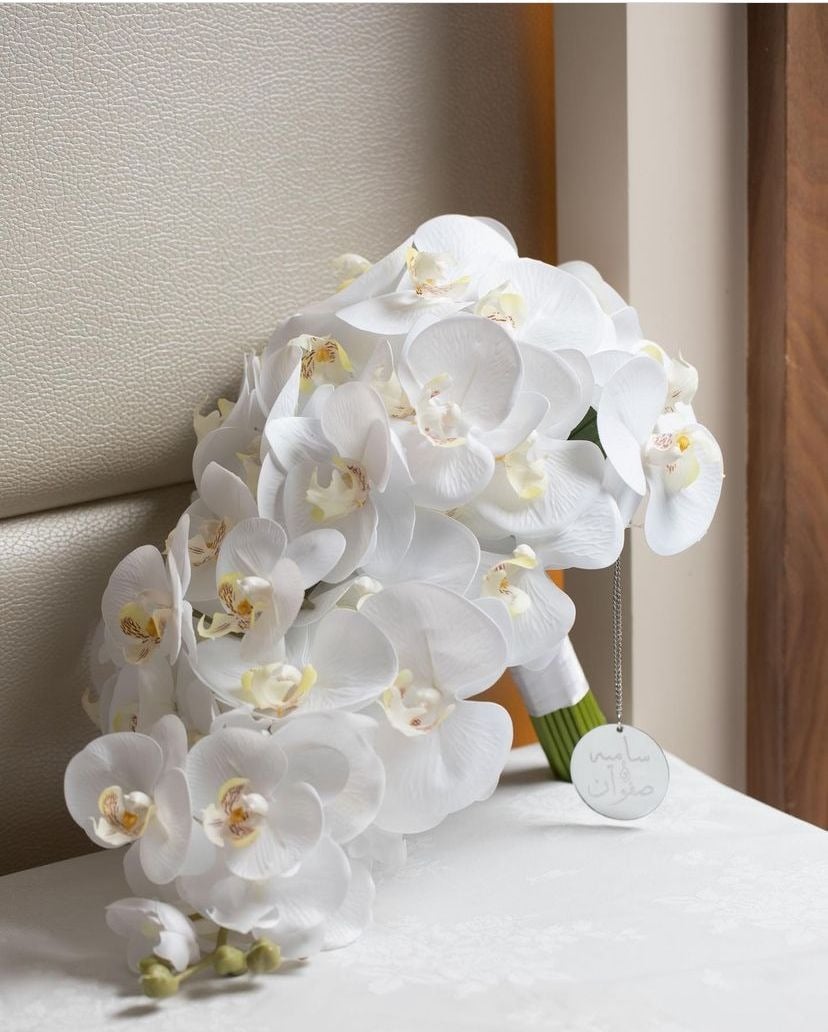 مسكه فرنسية نازله لاطلاله ملكيه فاخره بورد الاوركيد الصناعي شبه الطبيعي مناسبه ليوم الزفاف و الملكة