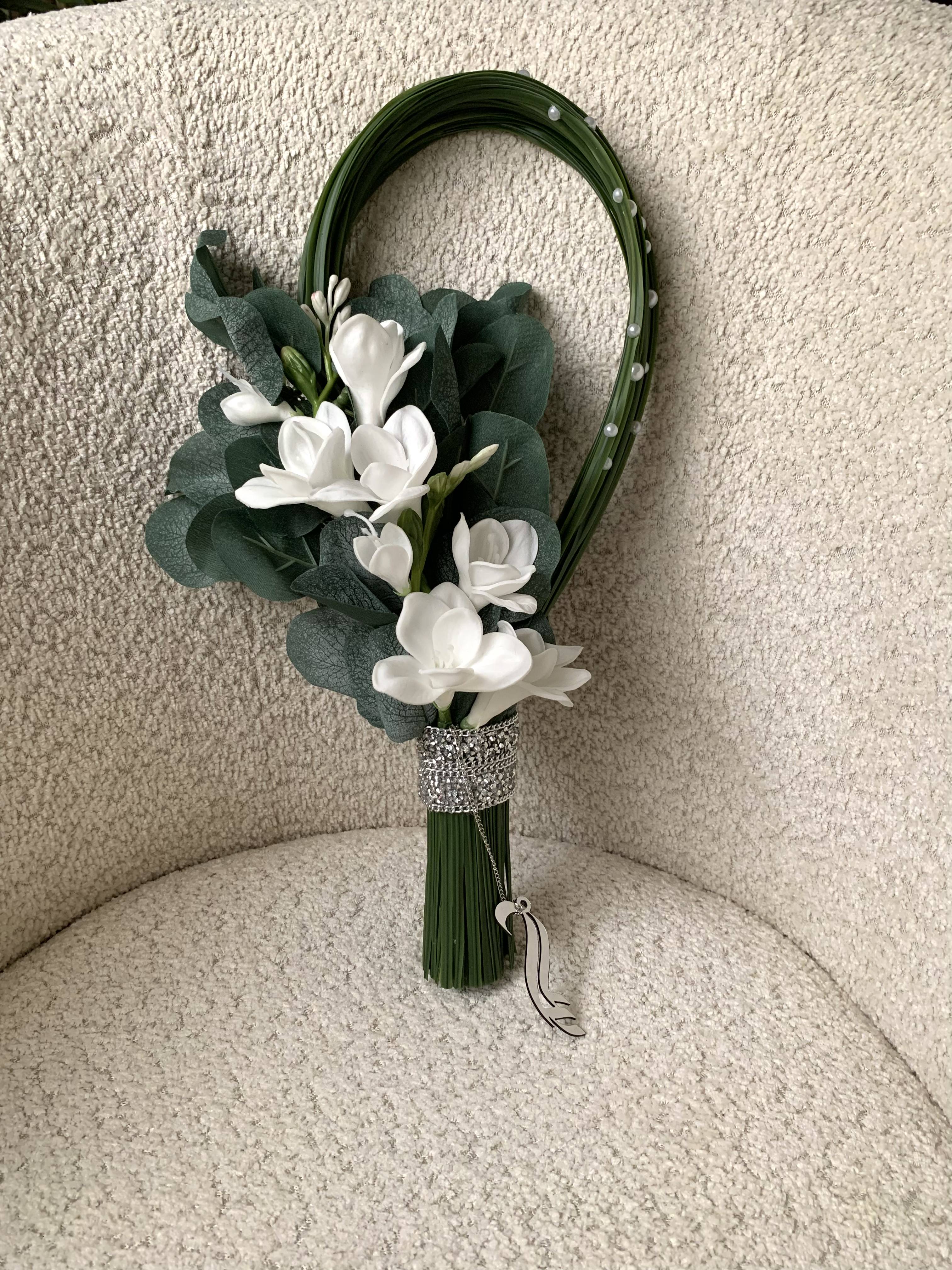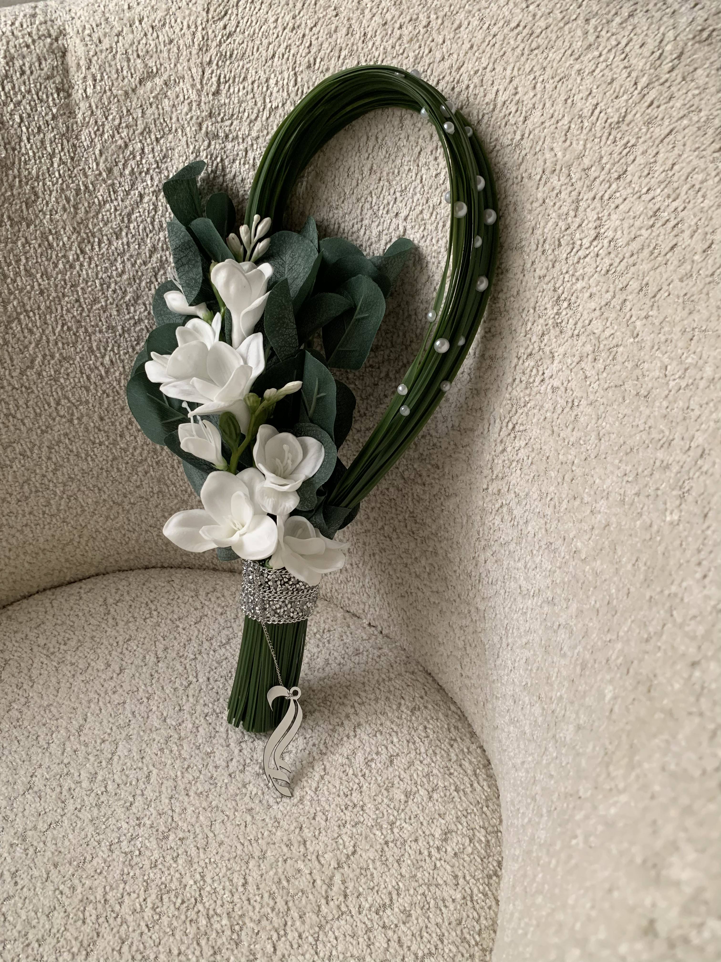 • يضاف مع المسكة تاق بإسم العروسين او الحروف ( حسب الرغبة )