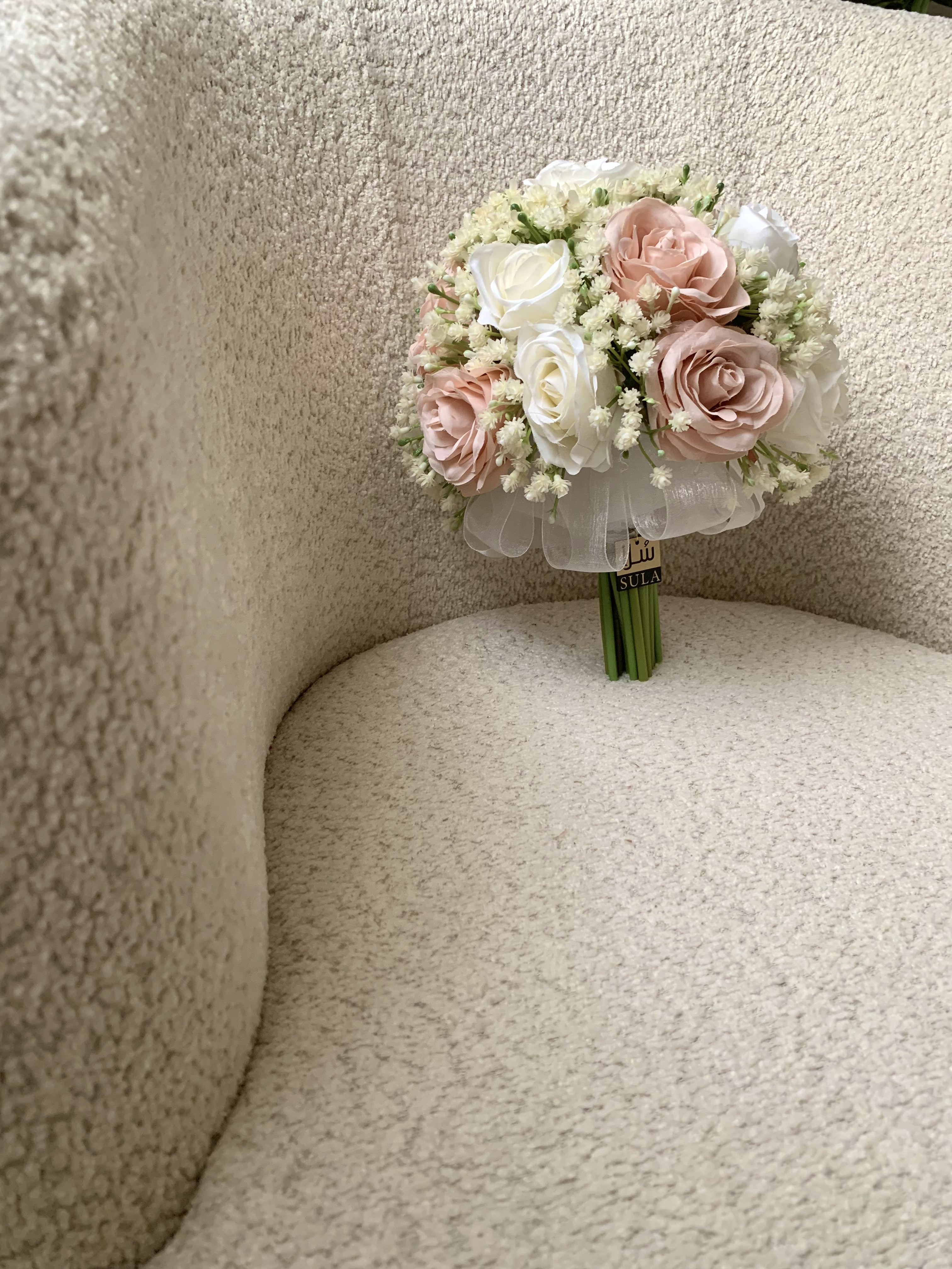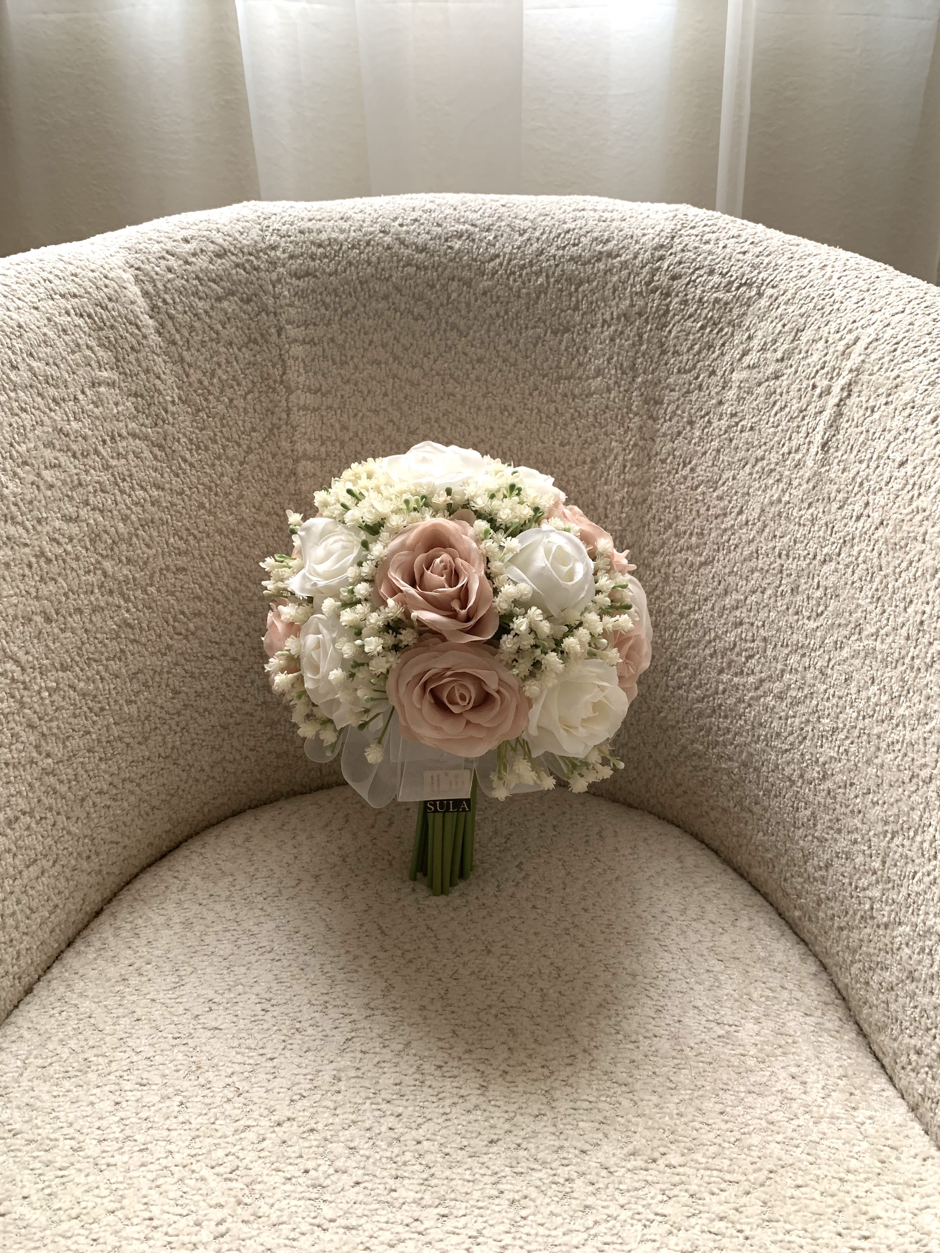 مسكة العروس الرقيقة ، مكونه من ورد الجوري الزهري مع الأبيض .