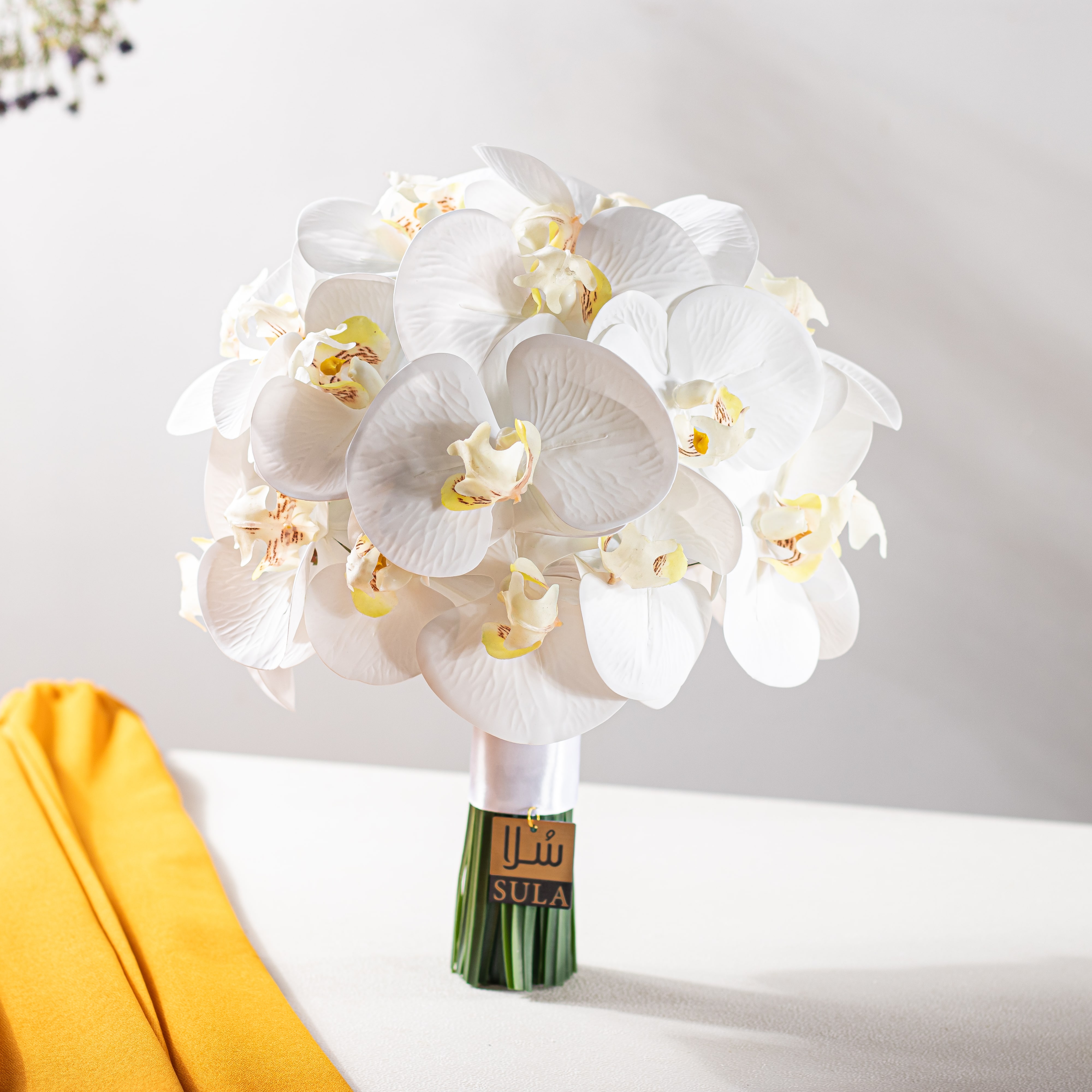 اختيرت لها ازهار الاوركيد البيضاء الذي يمثل البراءة و الجمال