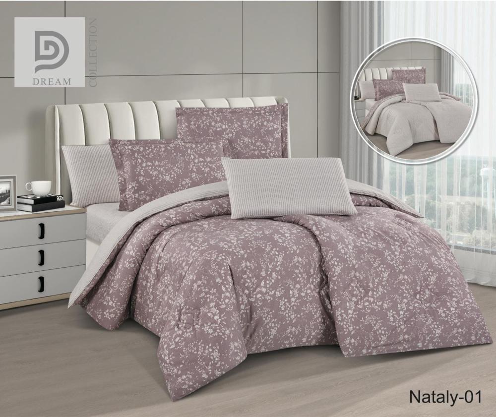 طقم مفرش سرير بتصميم عصري .. نقوشات بسيطة بألوان مفعمة بالحياة .. جودة قماش رائع و اختيار انيق لغرفة نومك