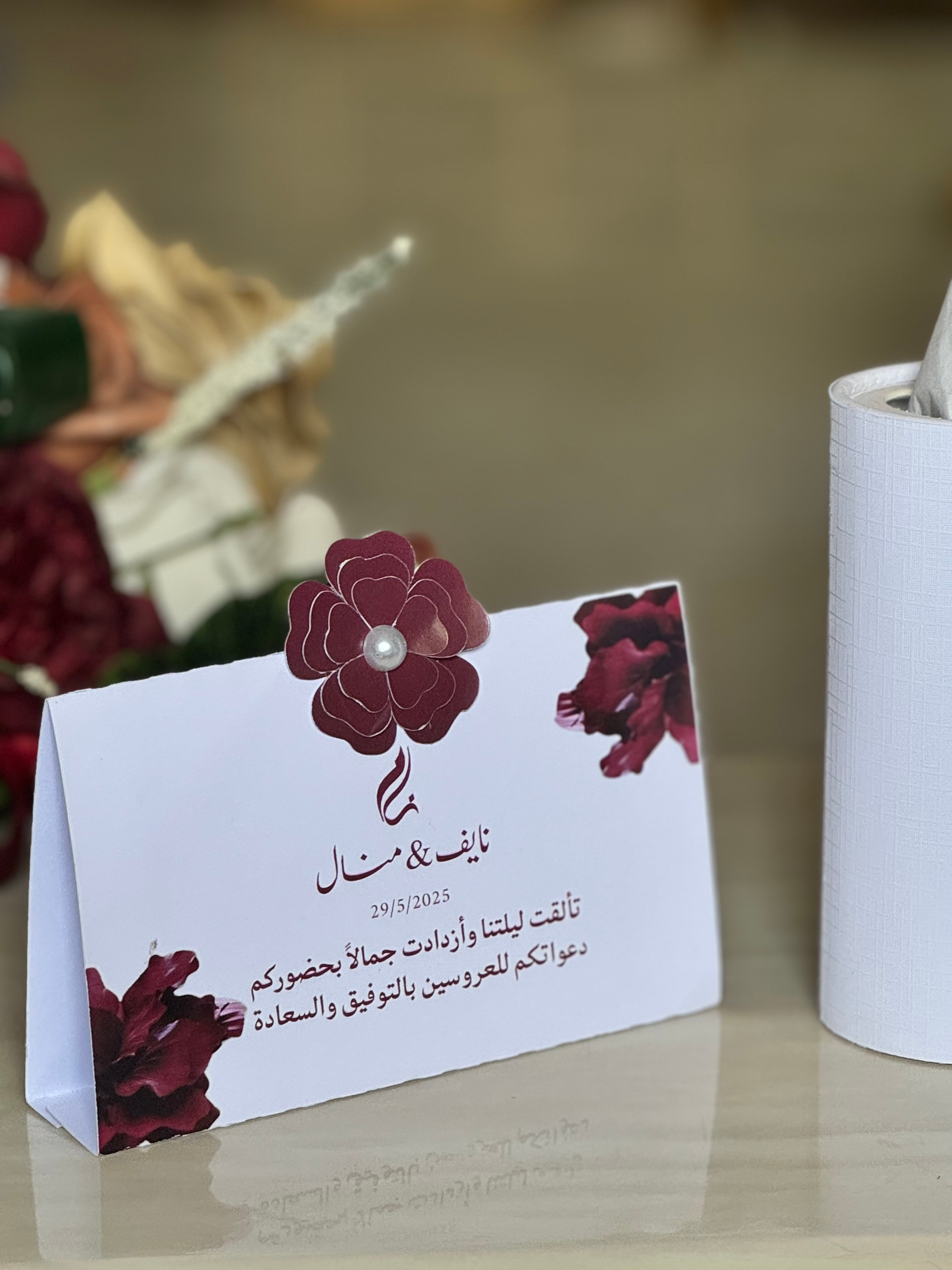 كرت طاوله تكتب فيه تهنئة للعرسان