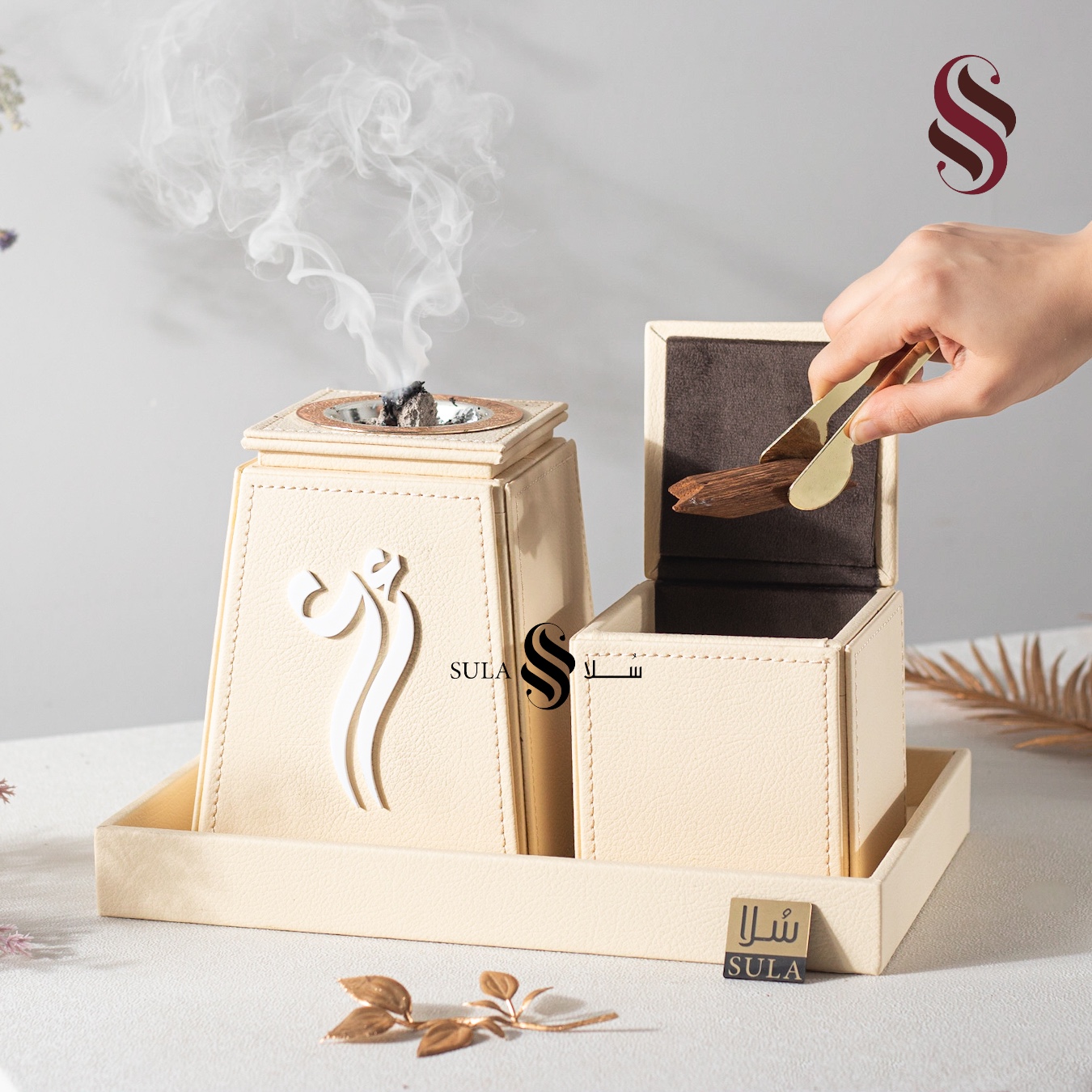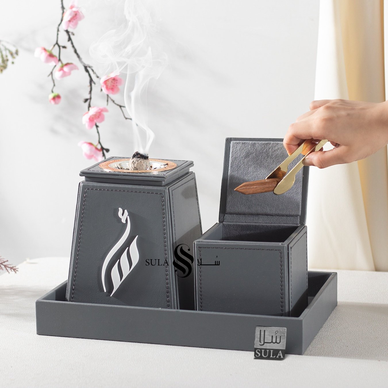 مجموعة مكتملة في منتج واحد . طقم المبخرة الجلدي الانيق يحتوي على مبخرة و علبة بخور و صينية .