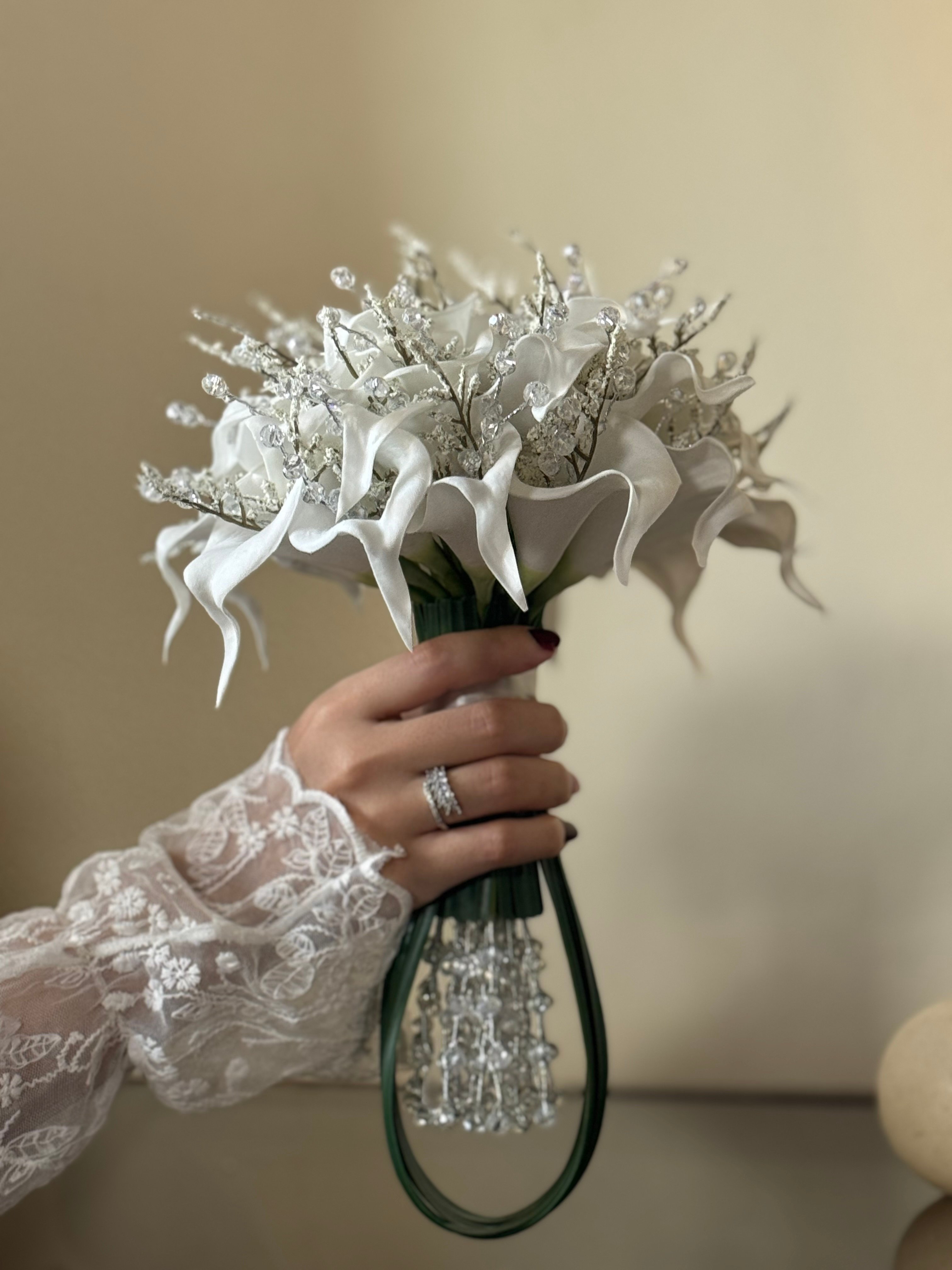 مسكه أنيقه وأنثويه ..متناغمه الالوان مزيج بين زهره الكالا و ورد التوليب مطعمه بالافندر الذي اضاف أناقه وتناسق للمسكه
