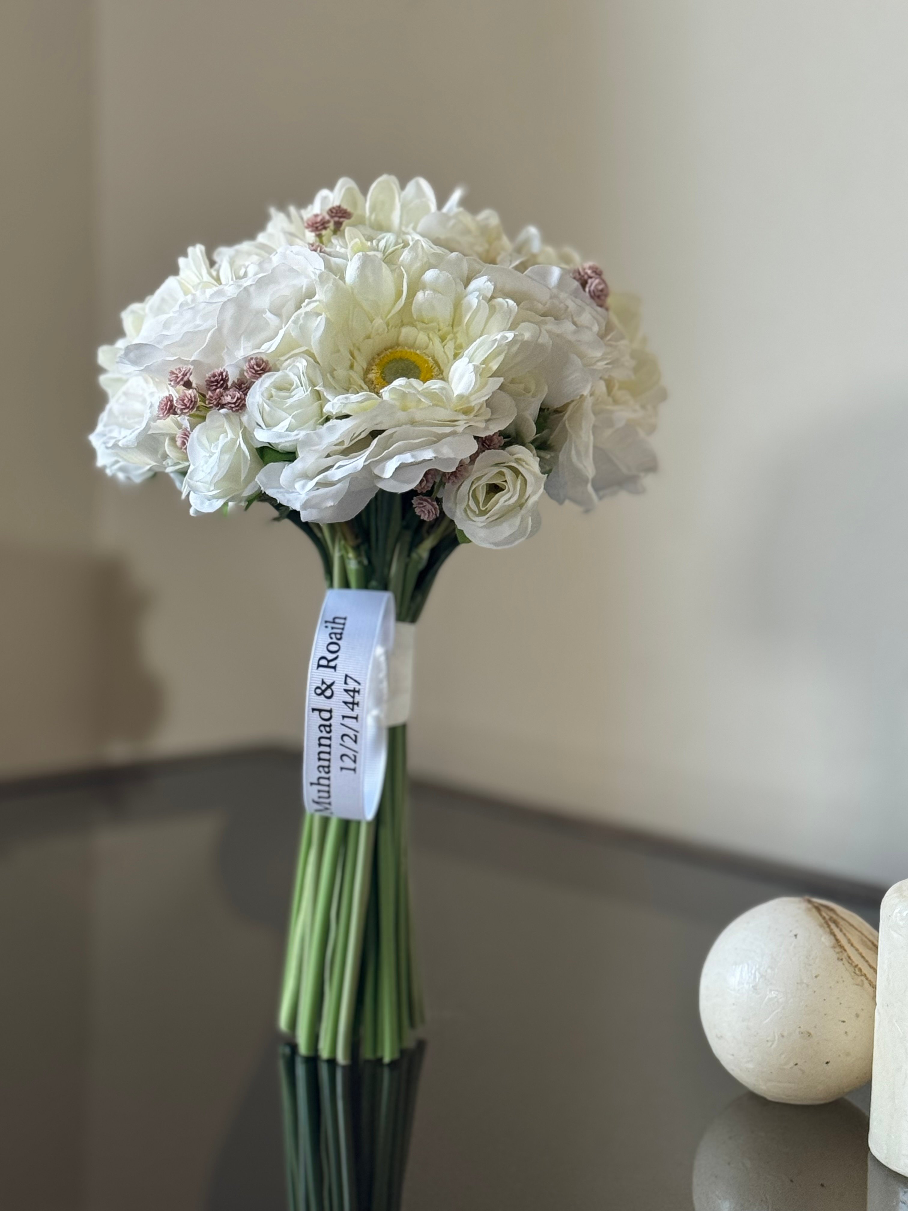 - يضاف مع المسكة تاق بإسم العروسين او الحروف ( حسب الرغبة )