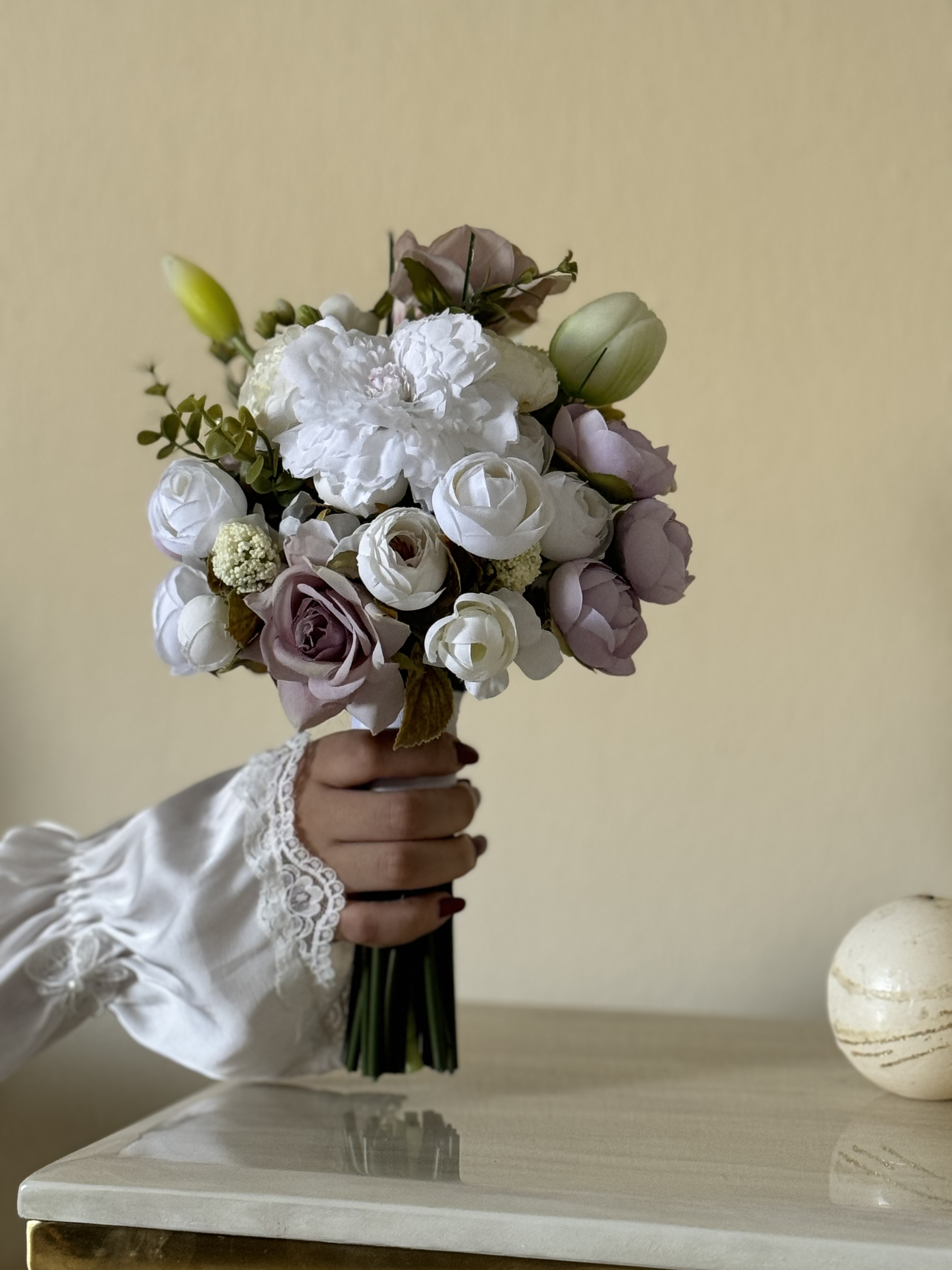 مسكه أنيقه وأنثويه ..متناغمه الالوان مزيج بين زهره الكالا و ورد التوليب مطعمه بالافندر الذي اضاف أناقه وتناسق للمسكه