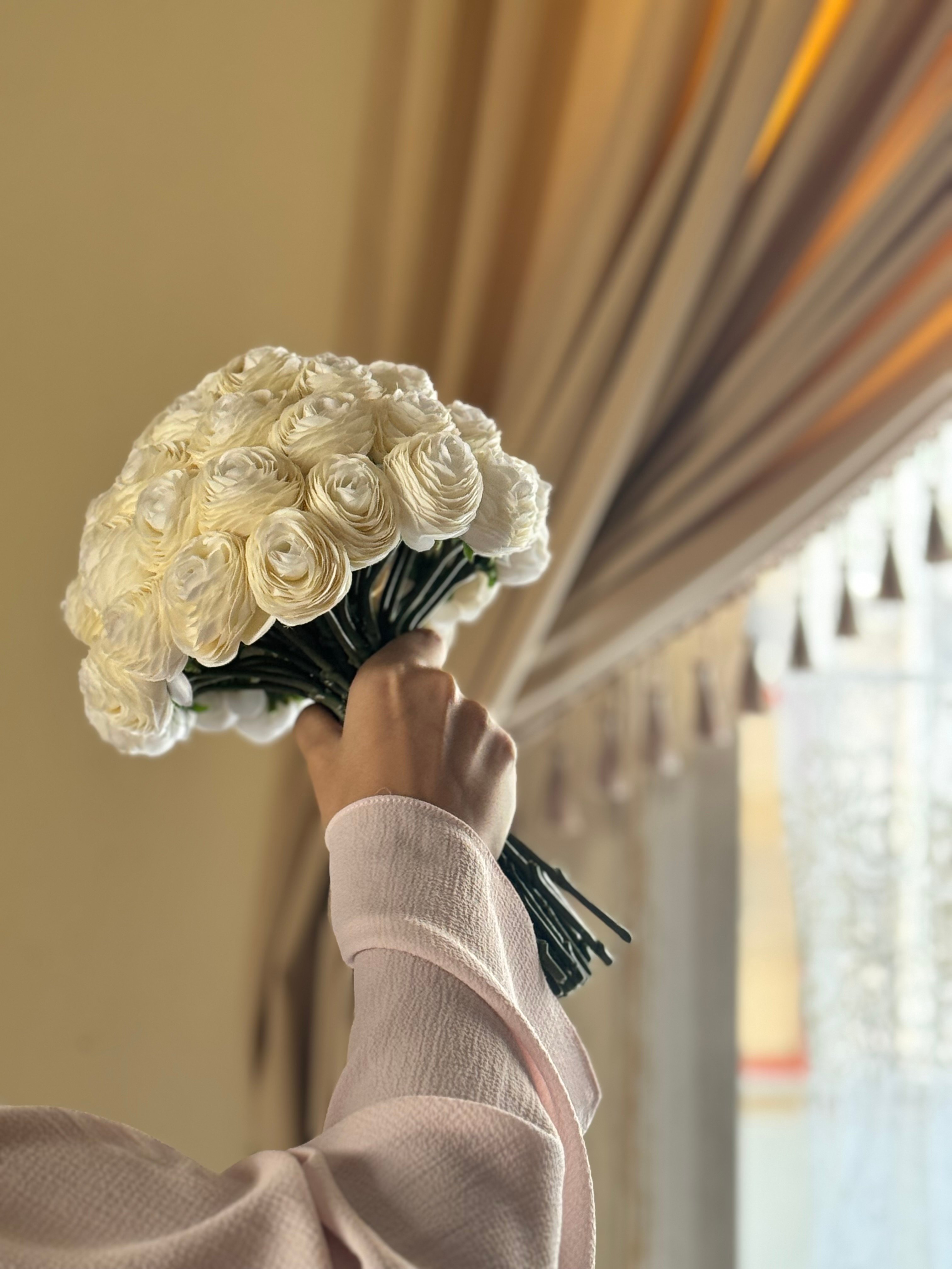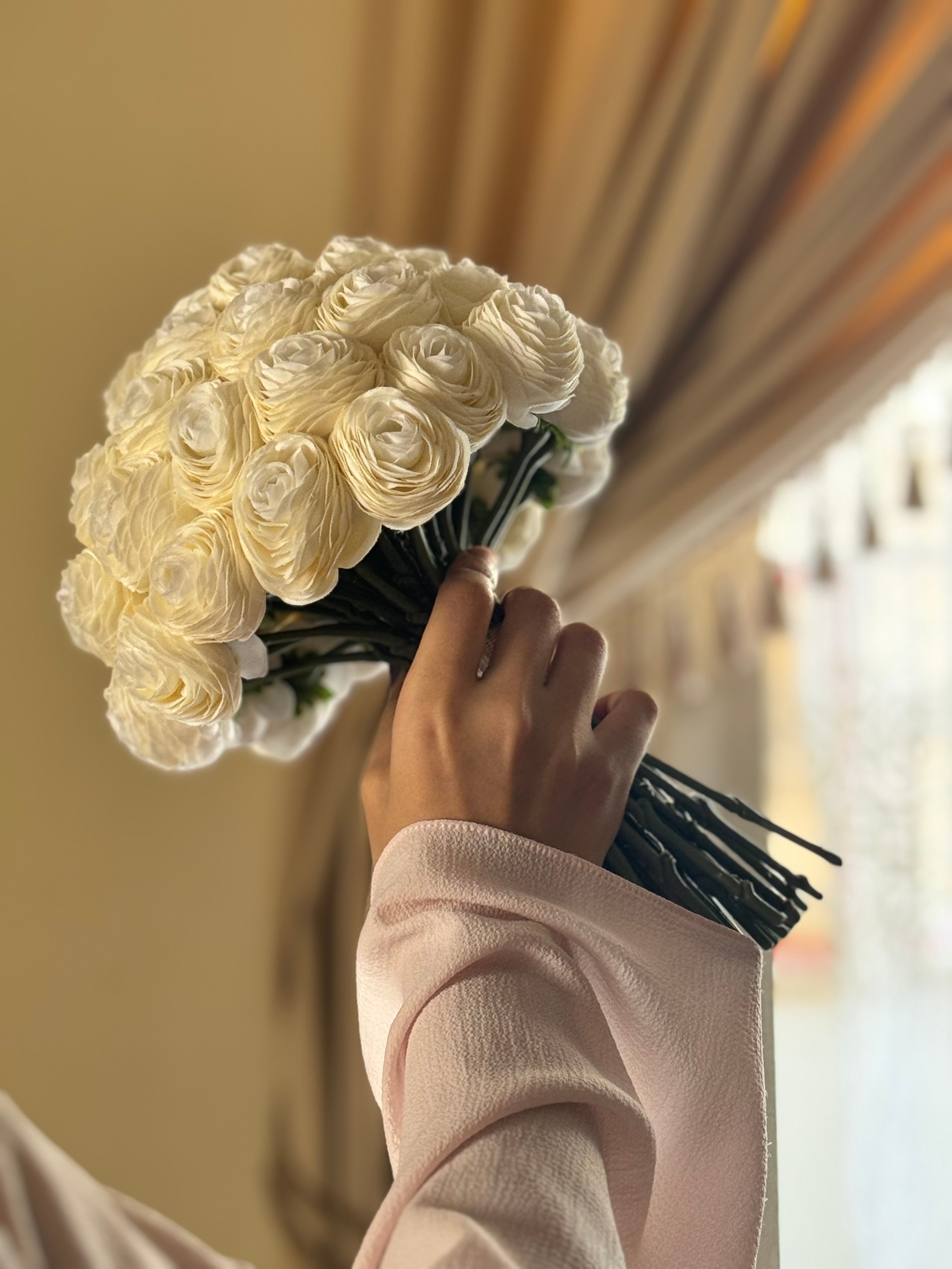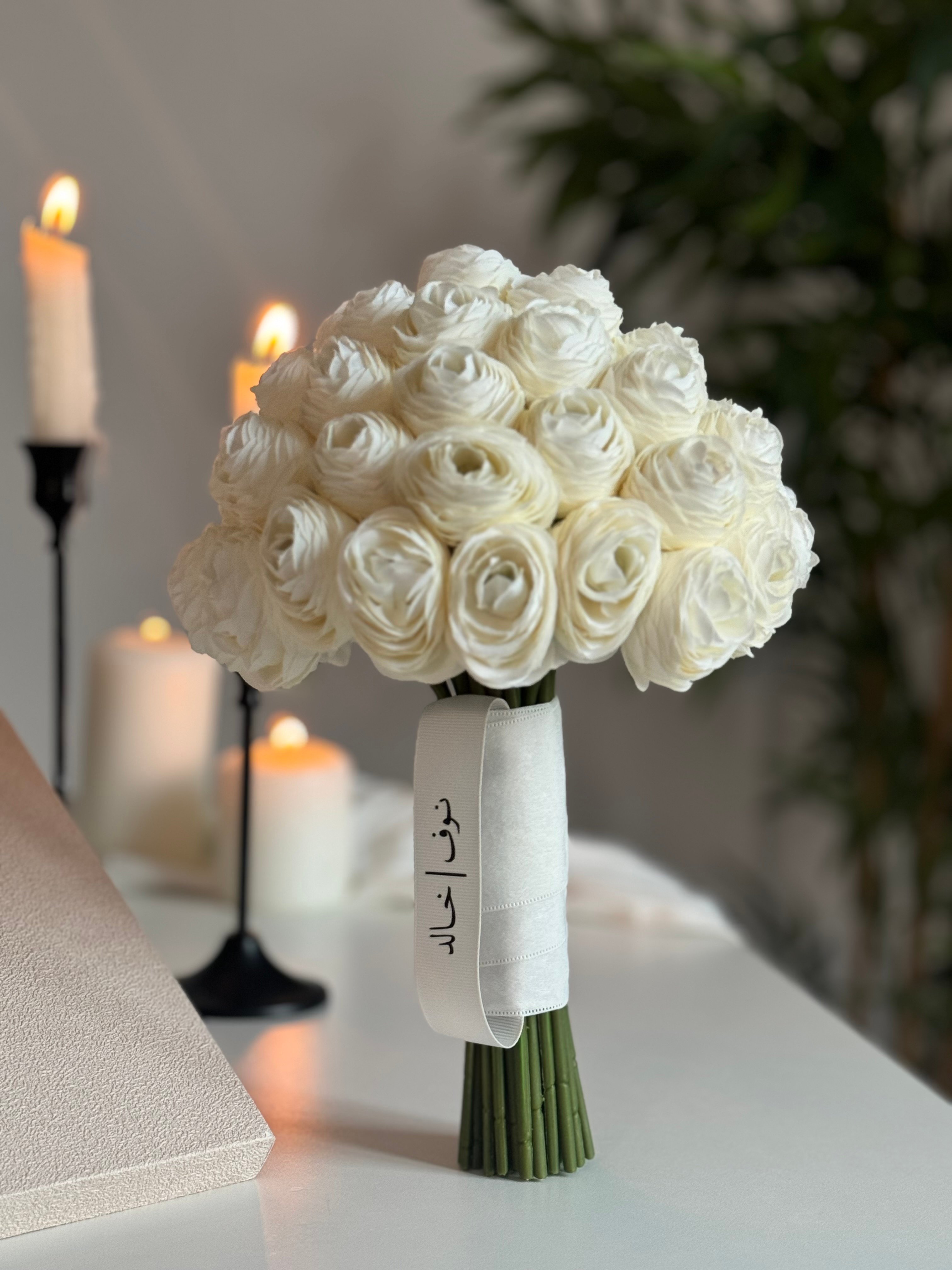 مسكه أنيقه وأنثويه .. و اضفت لمسة اللون السكري من زهور الرانكلوس الرقيقه والنادره