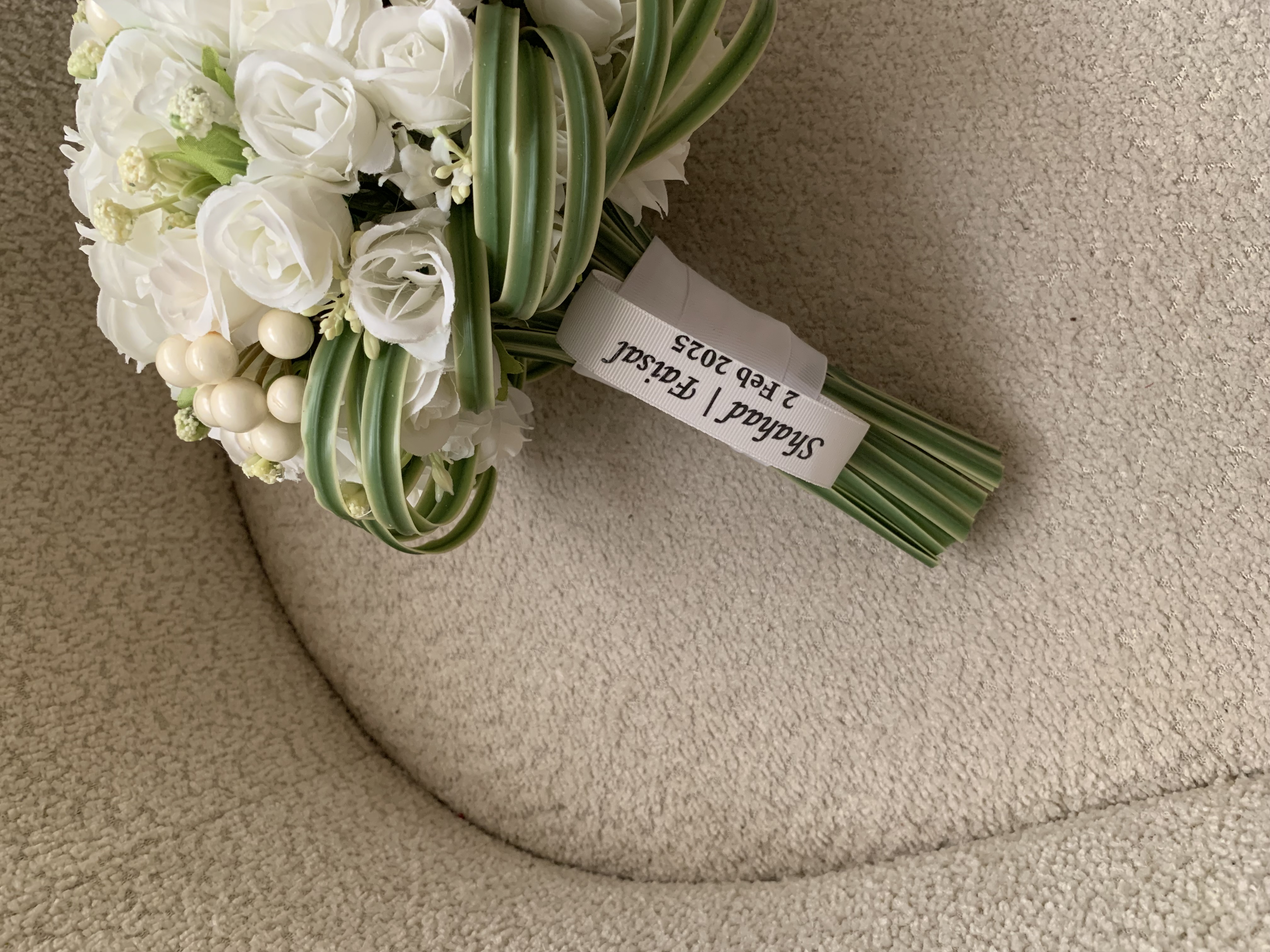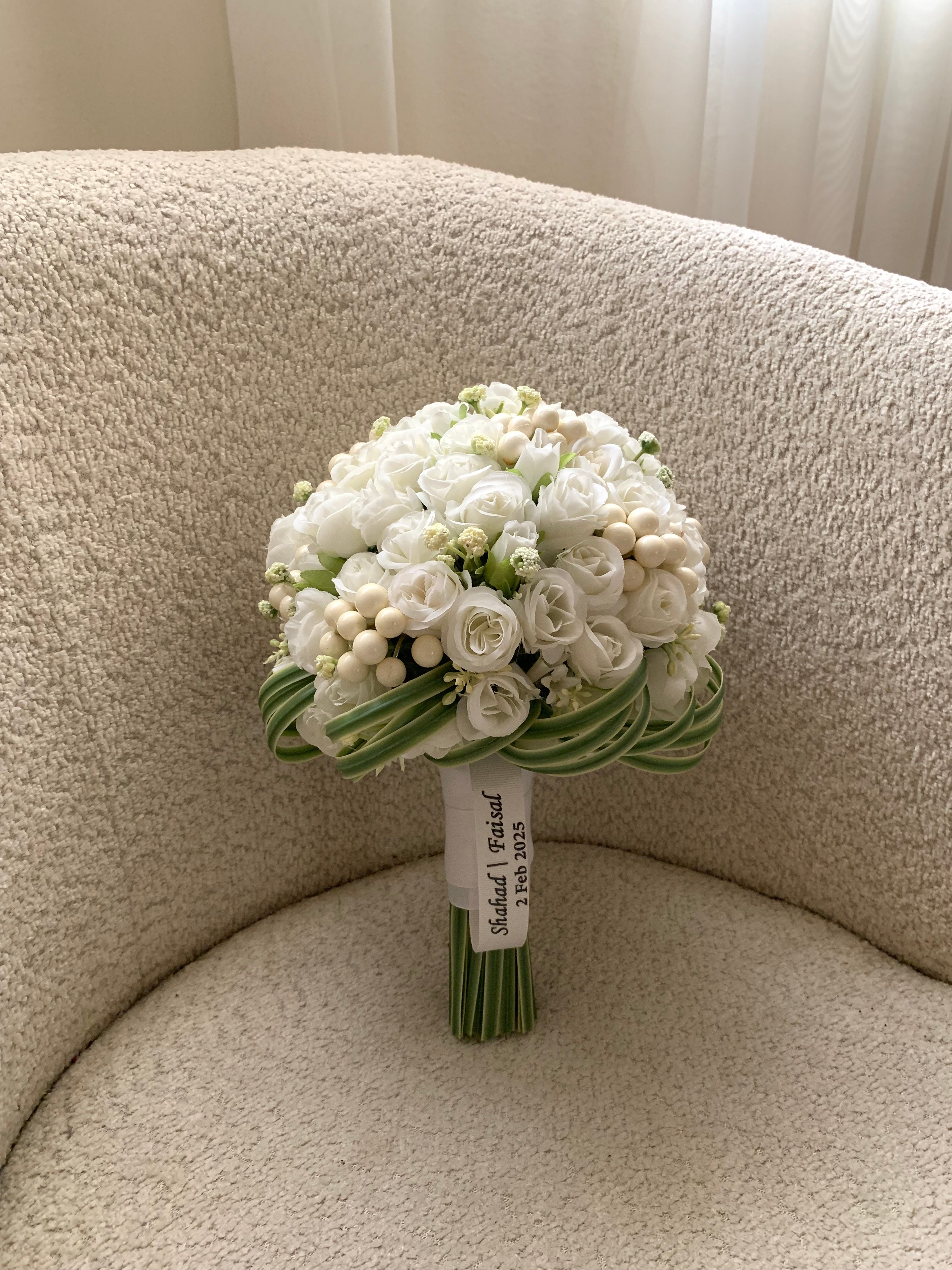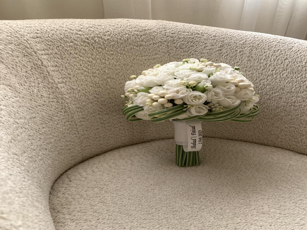 مسكة فريزيا بيضاء برونق لطيف و ناعم يناسب العروس