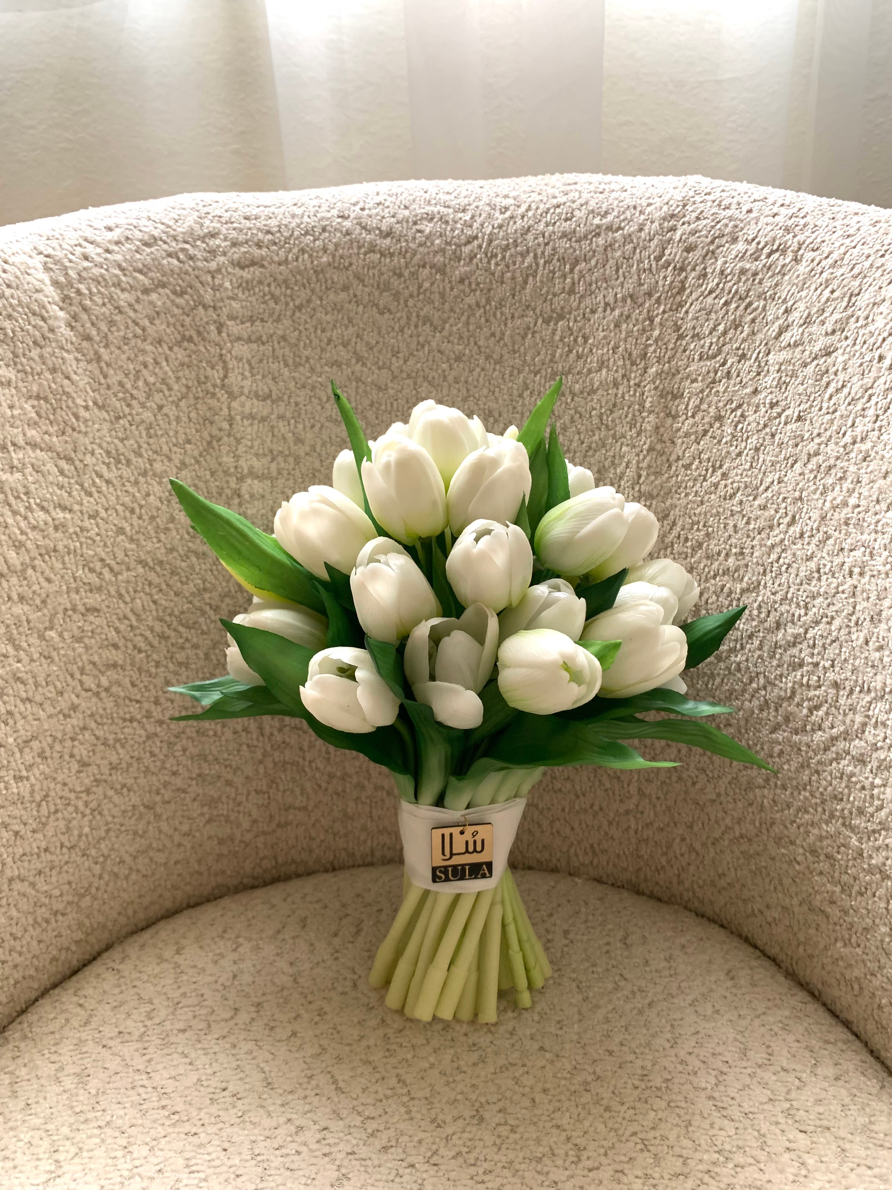 زينت بورود التوليب فقط بأغصان طويلة و شريطة انيقة