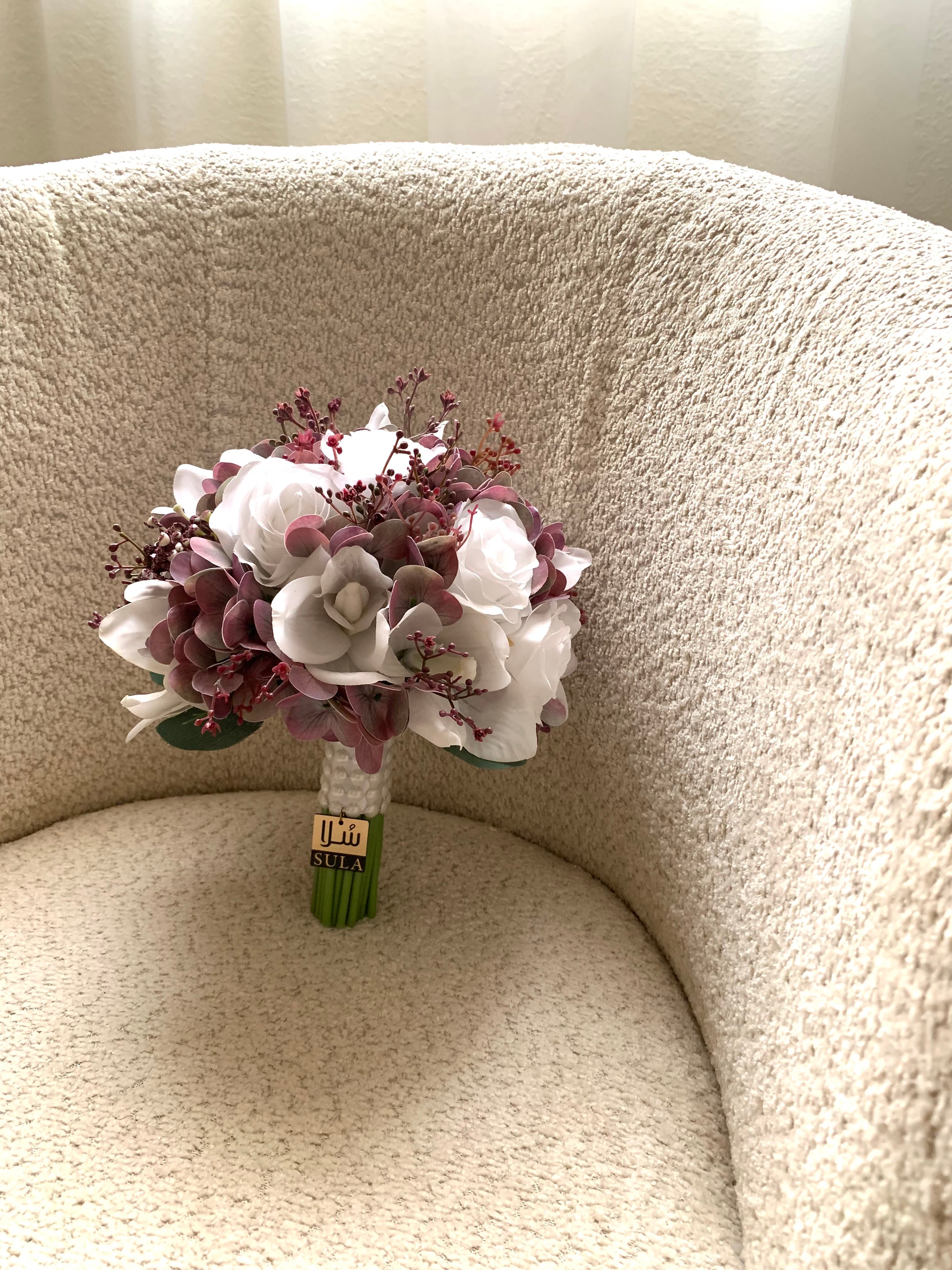 تصاميم دار سلا لمسكات العرايس الرائعة ، اختيرت لها زهور السمبديوم مع ورد الجوري و الجبسوفيليا