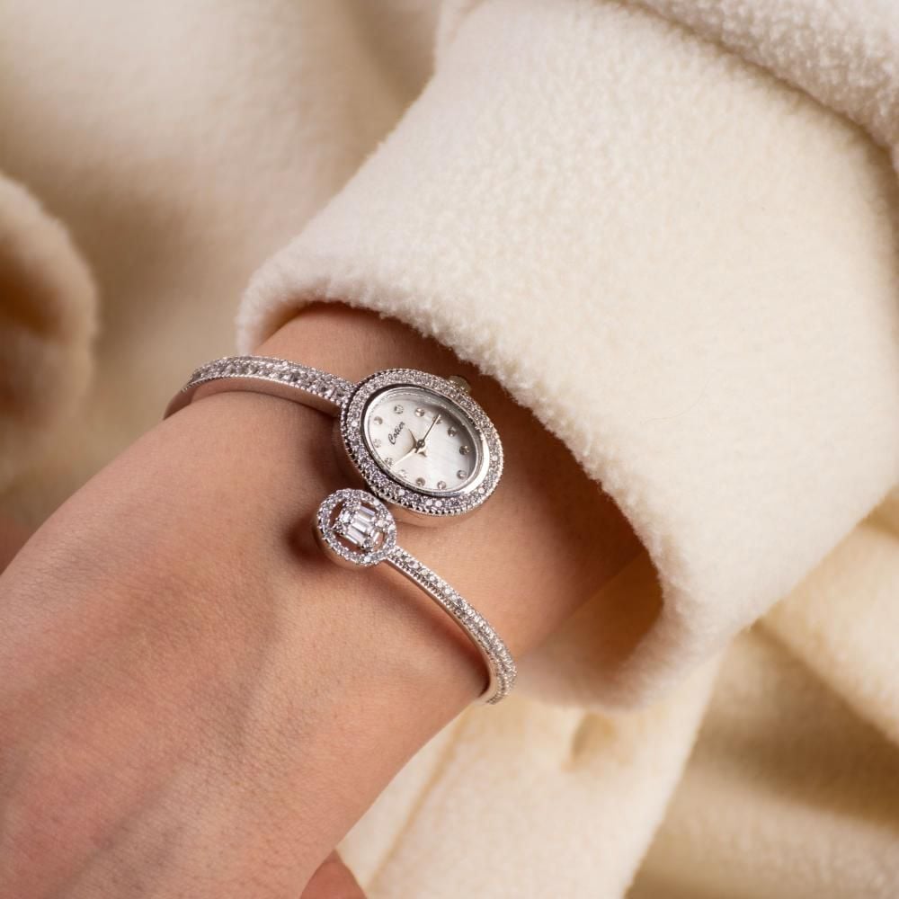 وتحتوي على أحجار زركون لامعة تزيّن إطارها و سيرها ، مما يضيف لمسة من التألق.