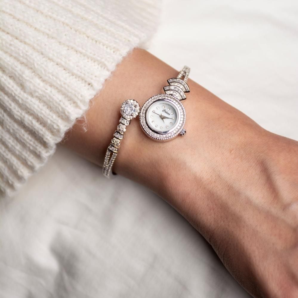 وتحتوي على أحجار زركون لامعة تزيّن إطارها و سيرها ، مما يضيف لمسة من التألق.