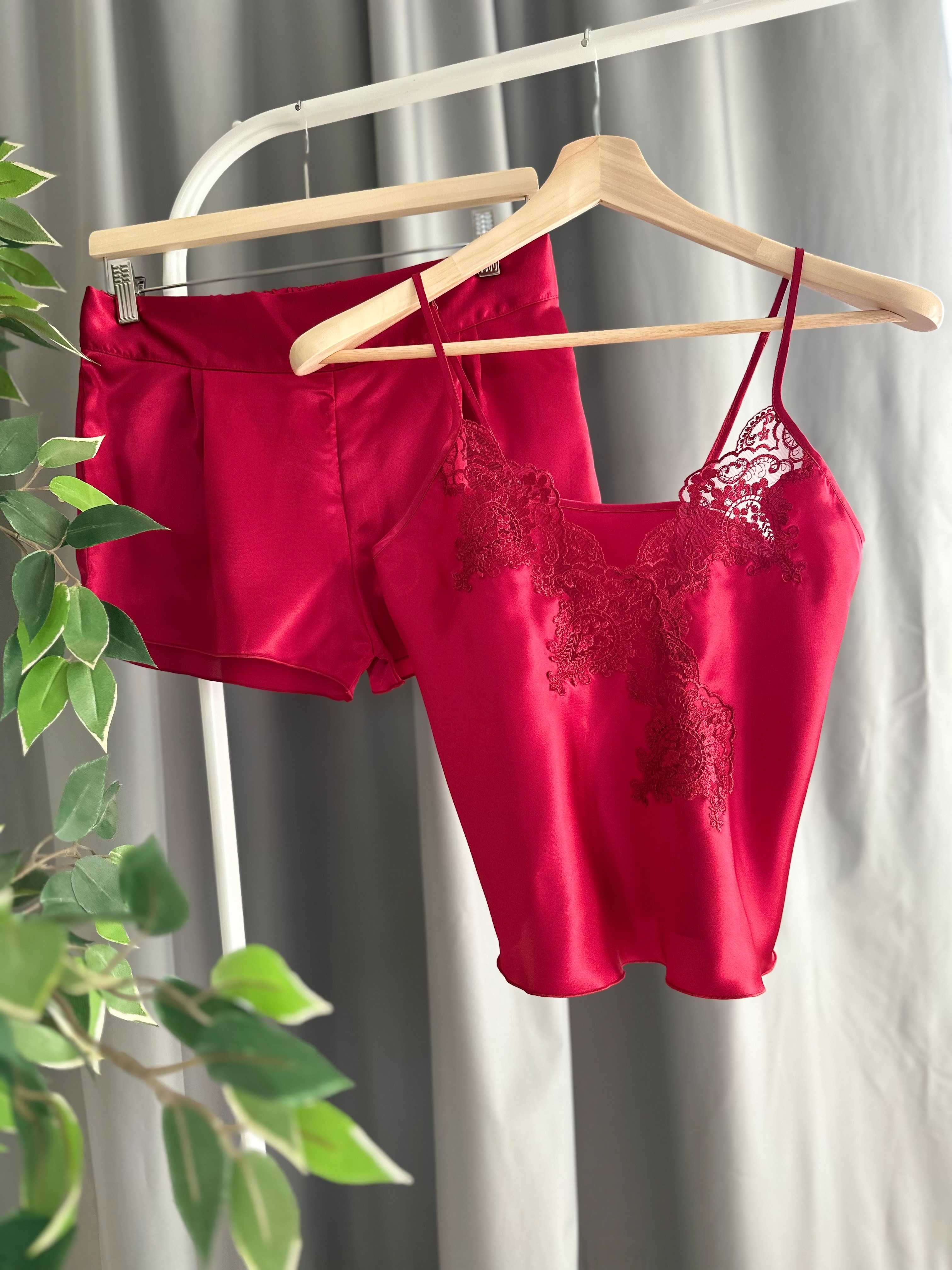 بجامة نوم مكونة من قميص و شورت بلون احمر