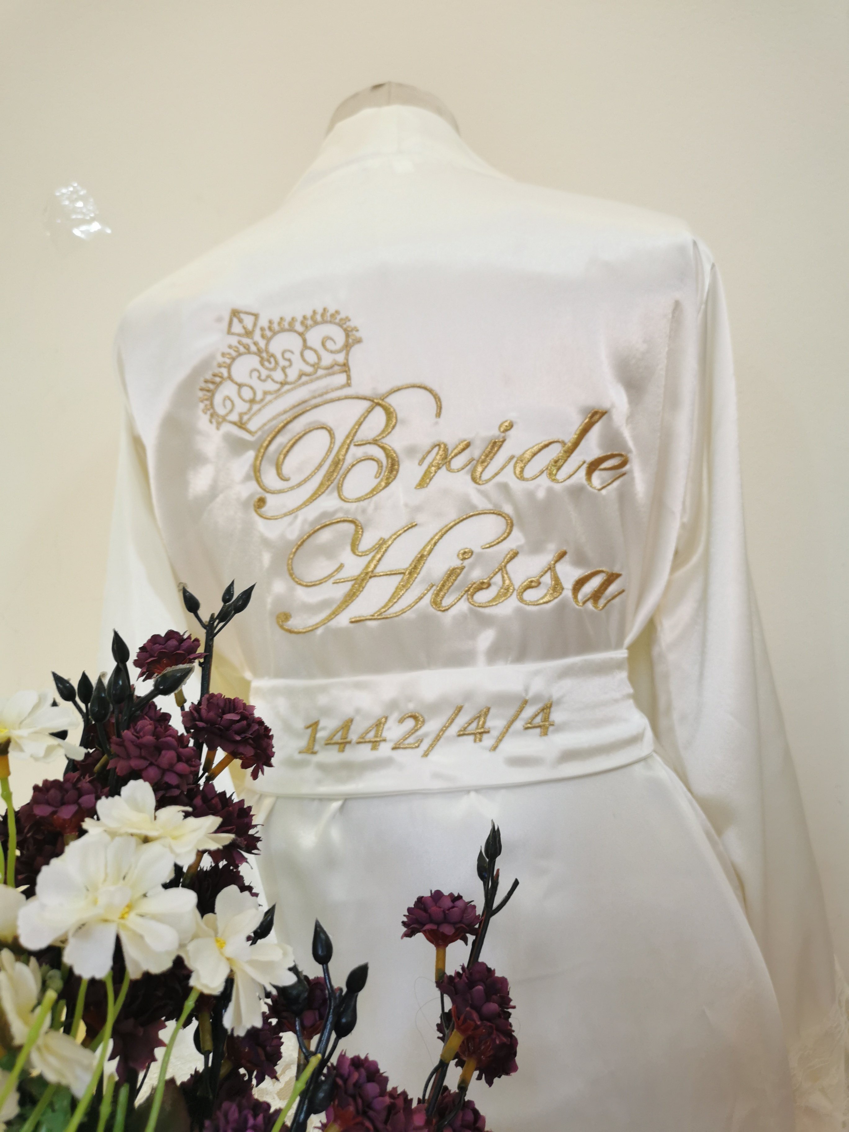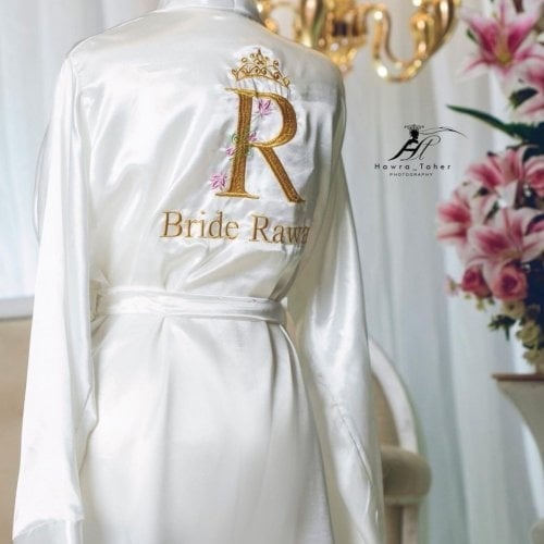روب حرير ناعم مطرز بالإسم