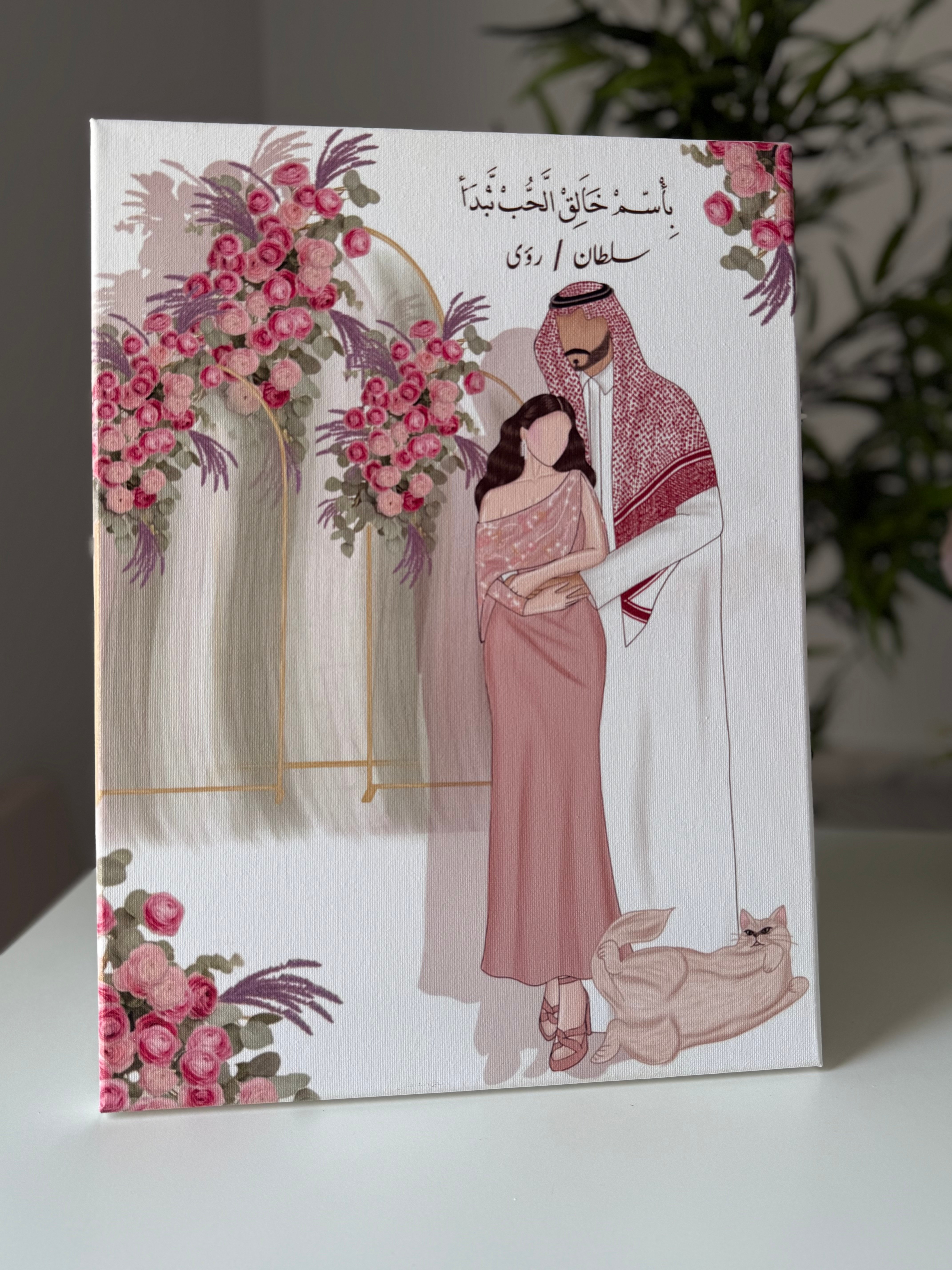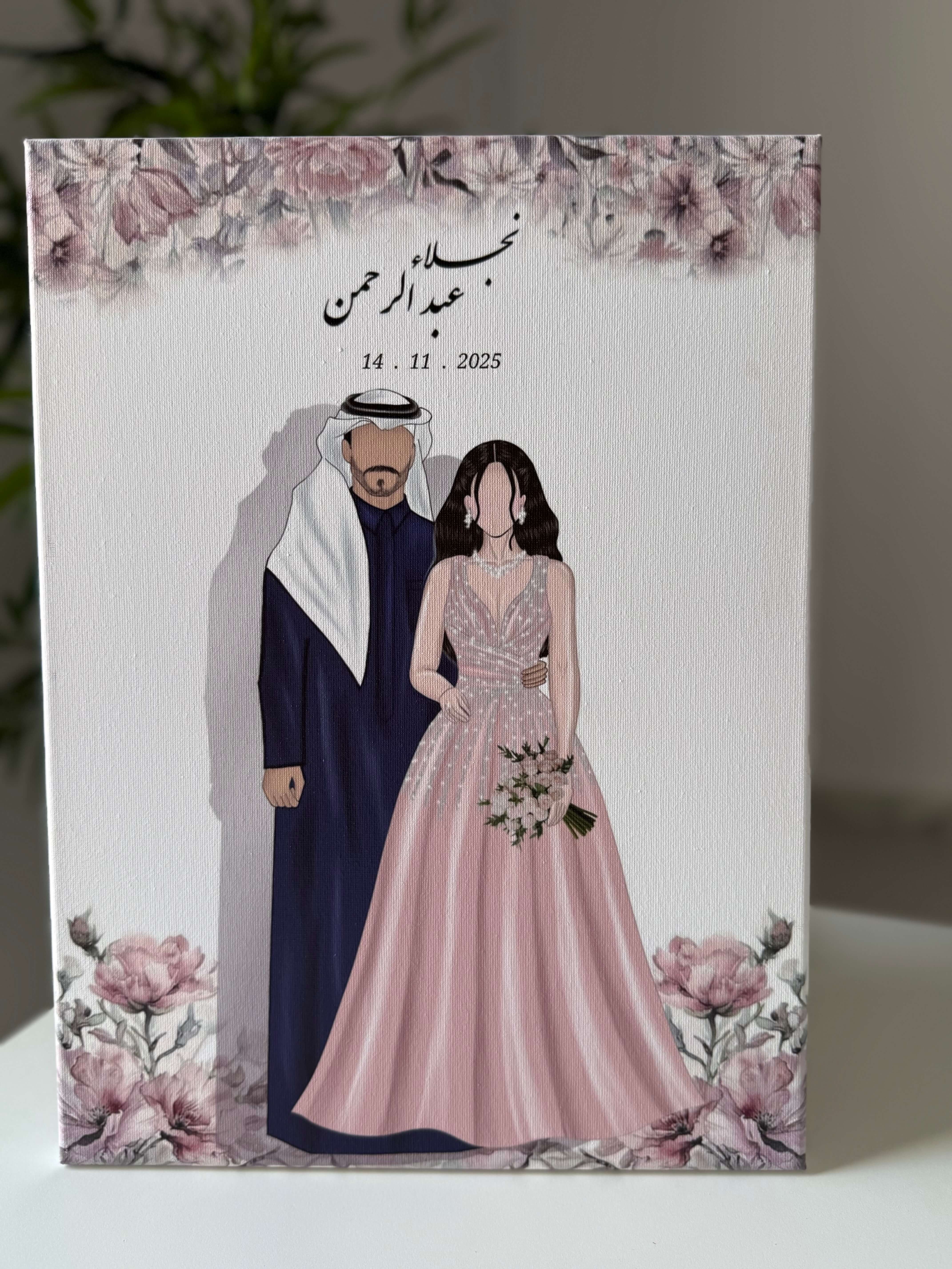 نقدّم لكم رسمًا مخصصًا للزوجين بمناسبة عقد القران أو الزواج، يُنفذ بكل حب وتفاصيل تعبّر عنكم أنتم، بأسلوب أنيق ومشاعر صادقة.