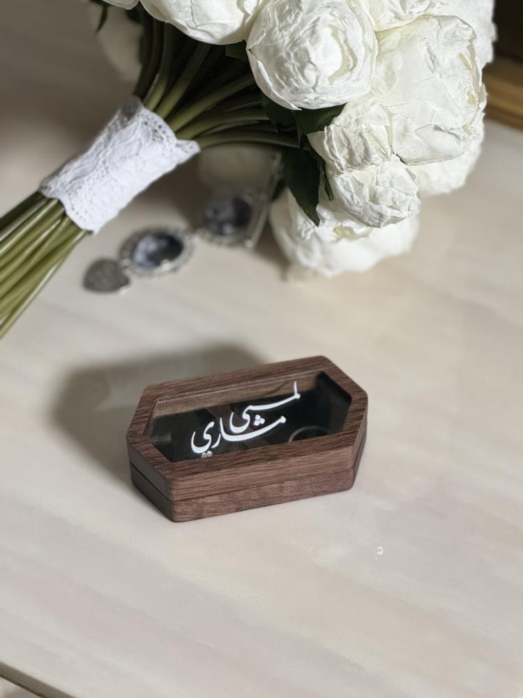 منقوش عليه اسماء العروسين .. فكرة مبتكره لتقديم و تلبيس الدبل فترة الخطوبة او حفلة الملكة و عقد القران .