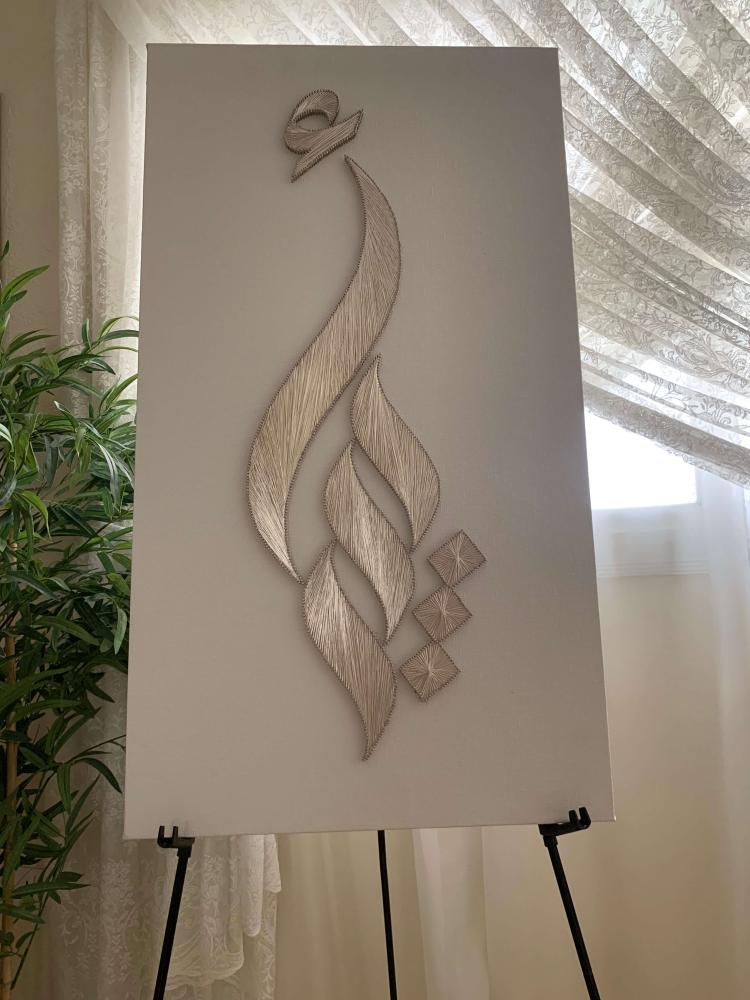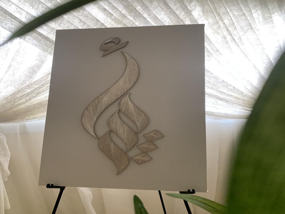 أضيفي لمسة فنية فاخرة لحفل زواجك أو قدمي أجمل هدية للعرايس مع لوحة خيوط يدوية مصممة بأسماء العروسين. عن الفن الراقي يدمج بين البساطة والإبداع، وتتجسد فيه الحروف بخيوط مشدودة بدقة على خشب أنيق.