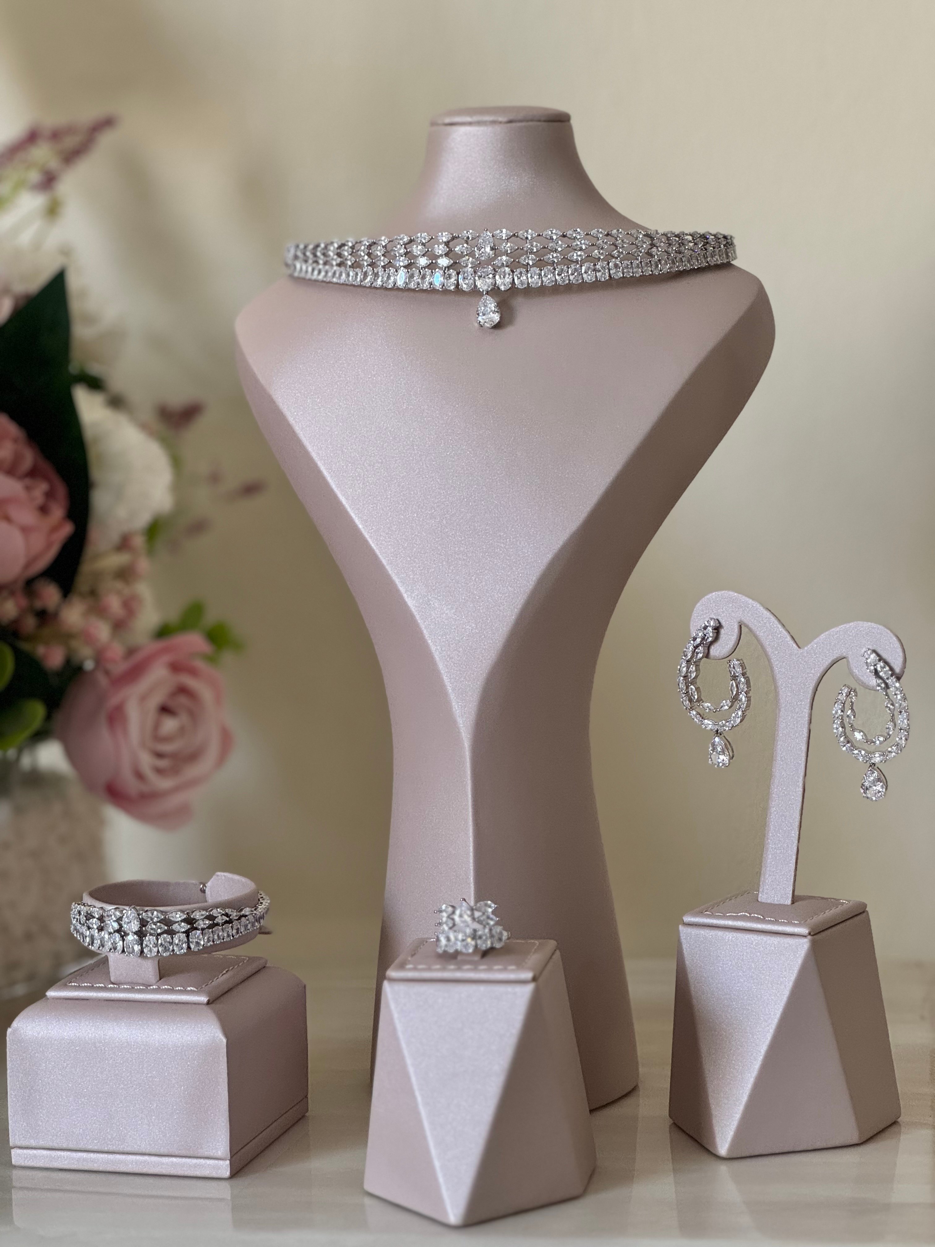 طقم اكسسوار فاخر رسمة الماس يعطي اطلالة مميزة للعروسز