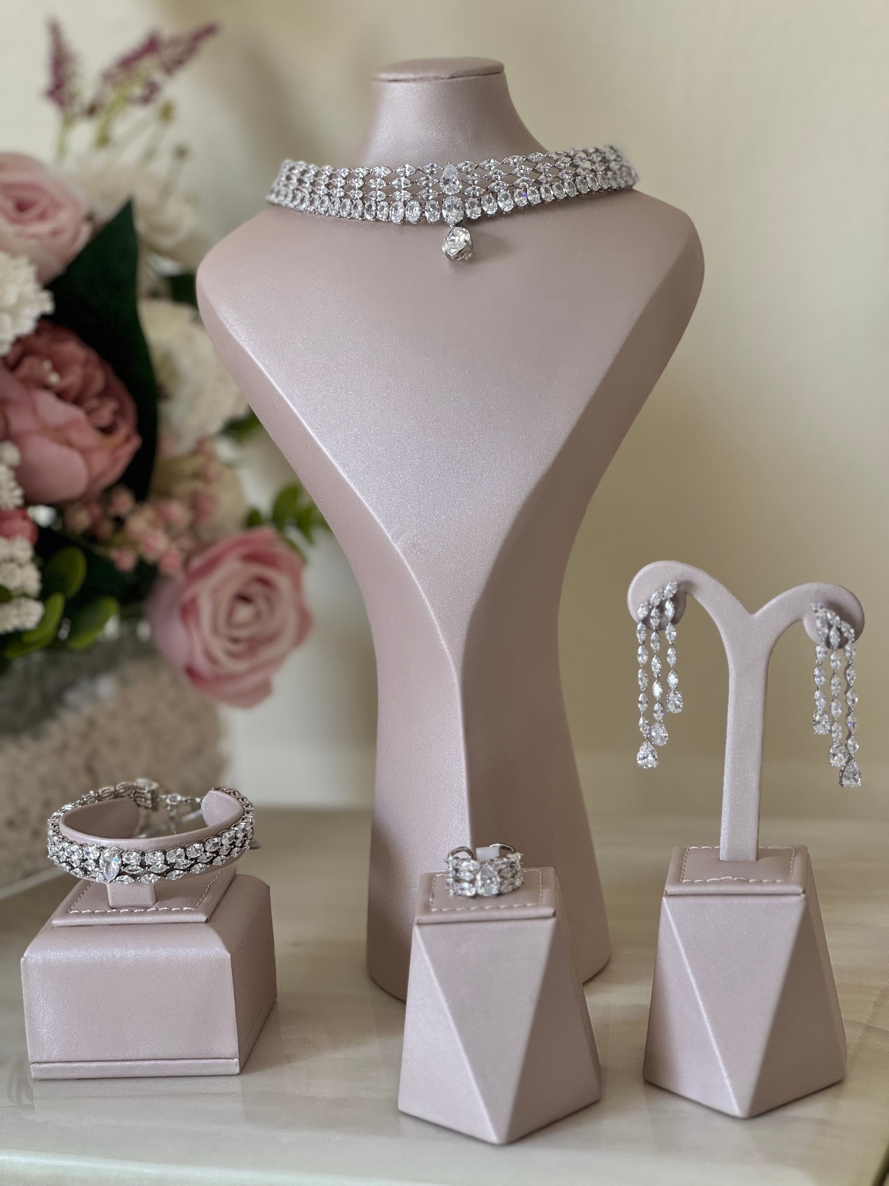 طقم اكسسوار فاخر رسمة الماس يعطي اطلالة مميزة للعروسز