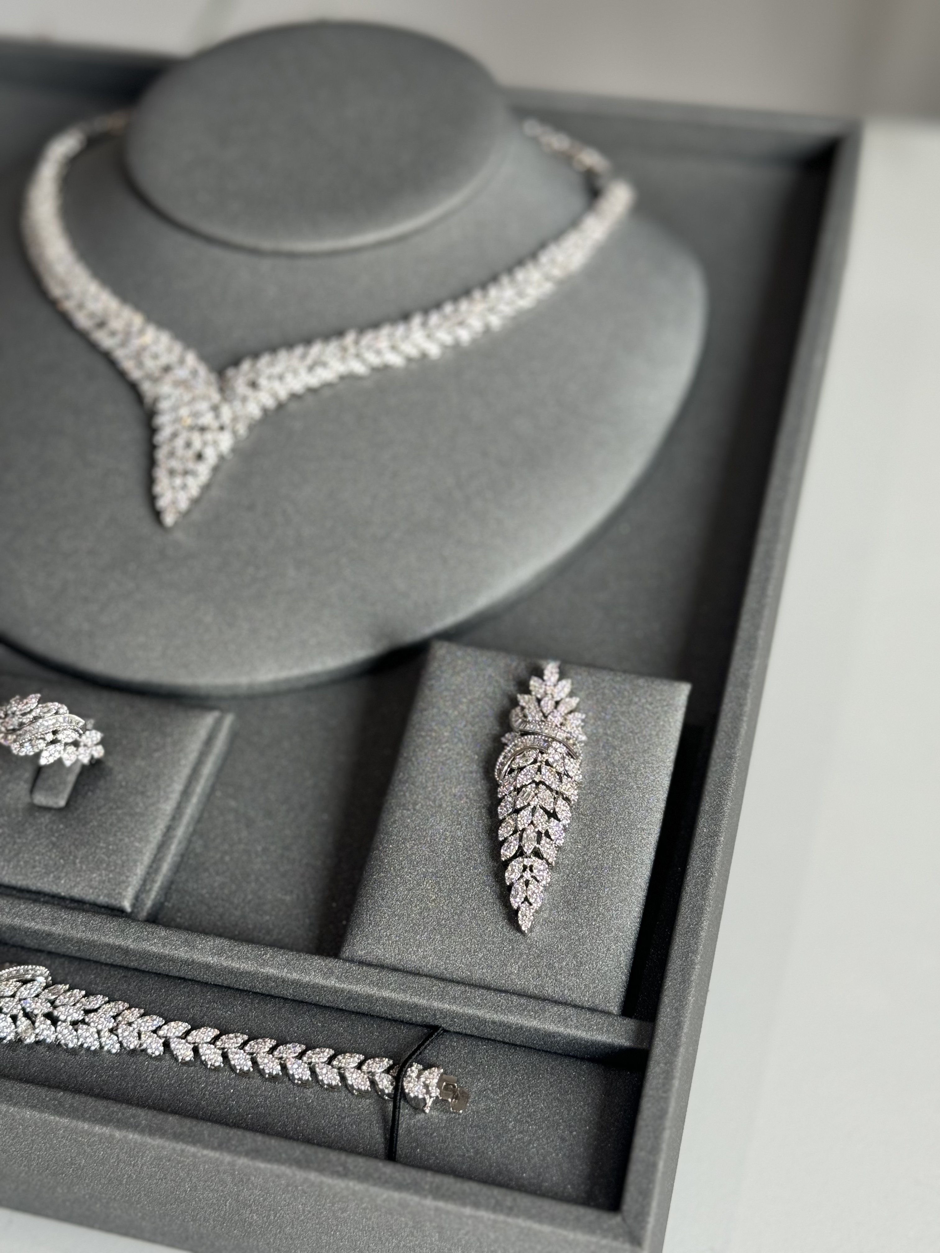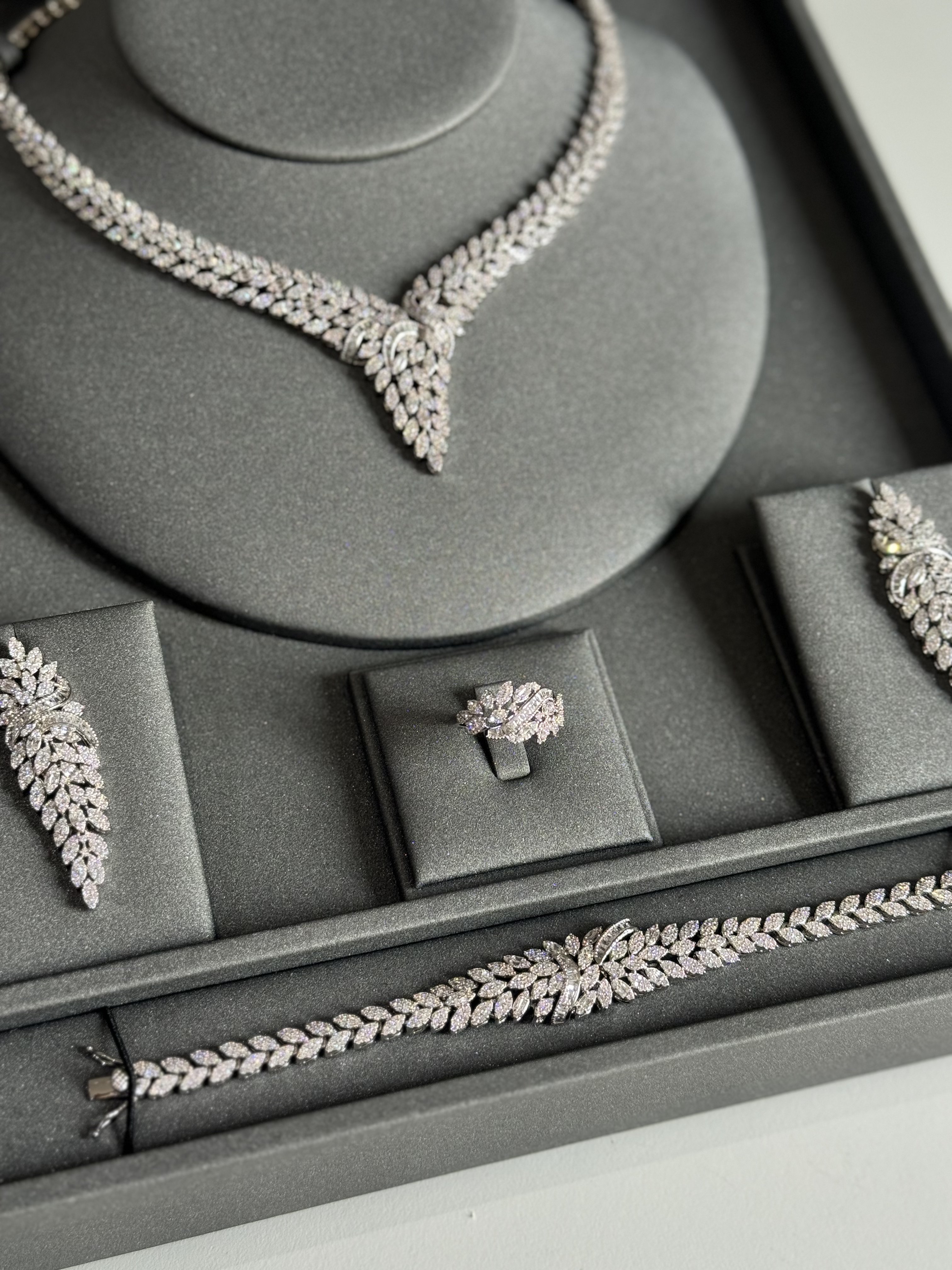 طقم إكسسوار بتصميم أنيق ولمعة فاخرة، يمنح إطلالة راقية تجعل الكثيرين يعتقدون أنه ذهب حقيقي عند ارتدائه.