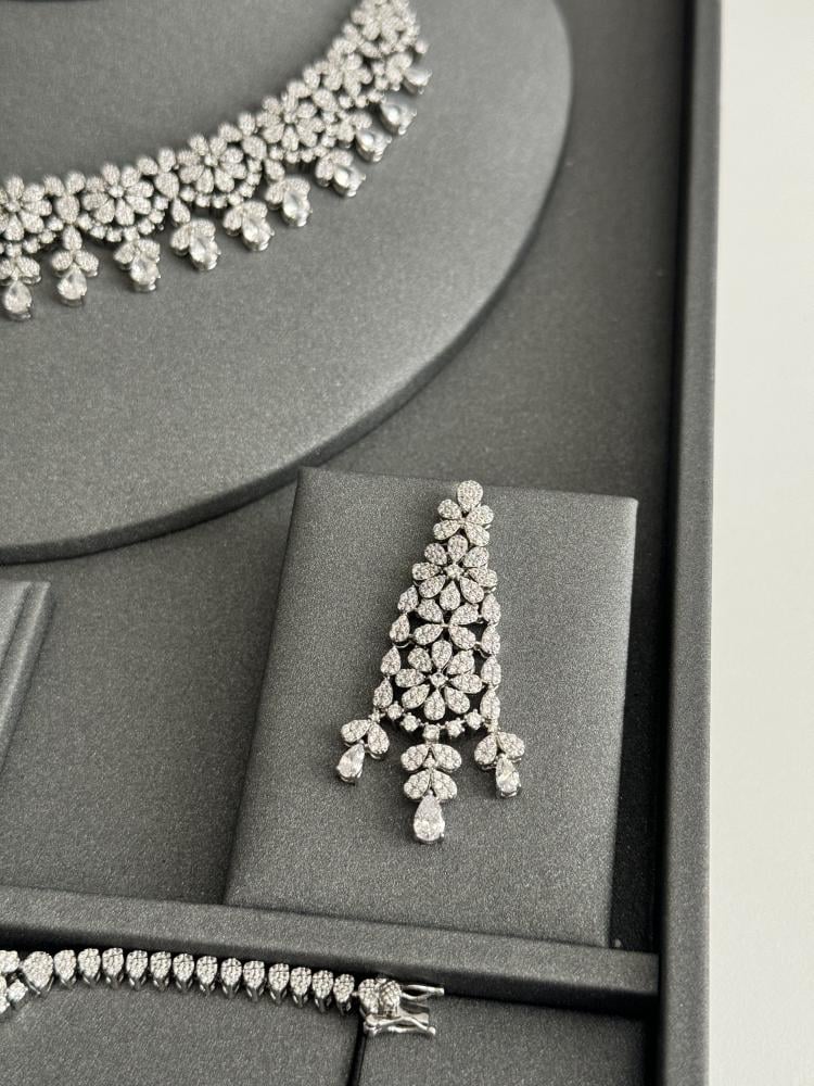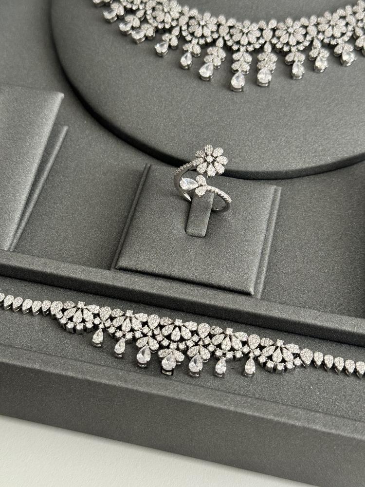 • مرصّع بـ زركون عالي الجودة يتميز بالنقاء والشفافية ولمعة قريبة من الألماس.