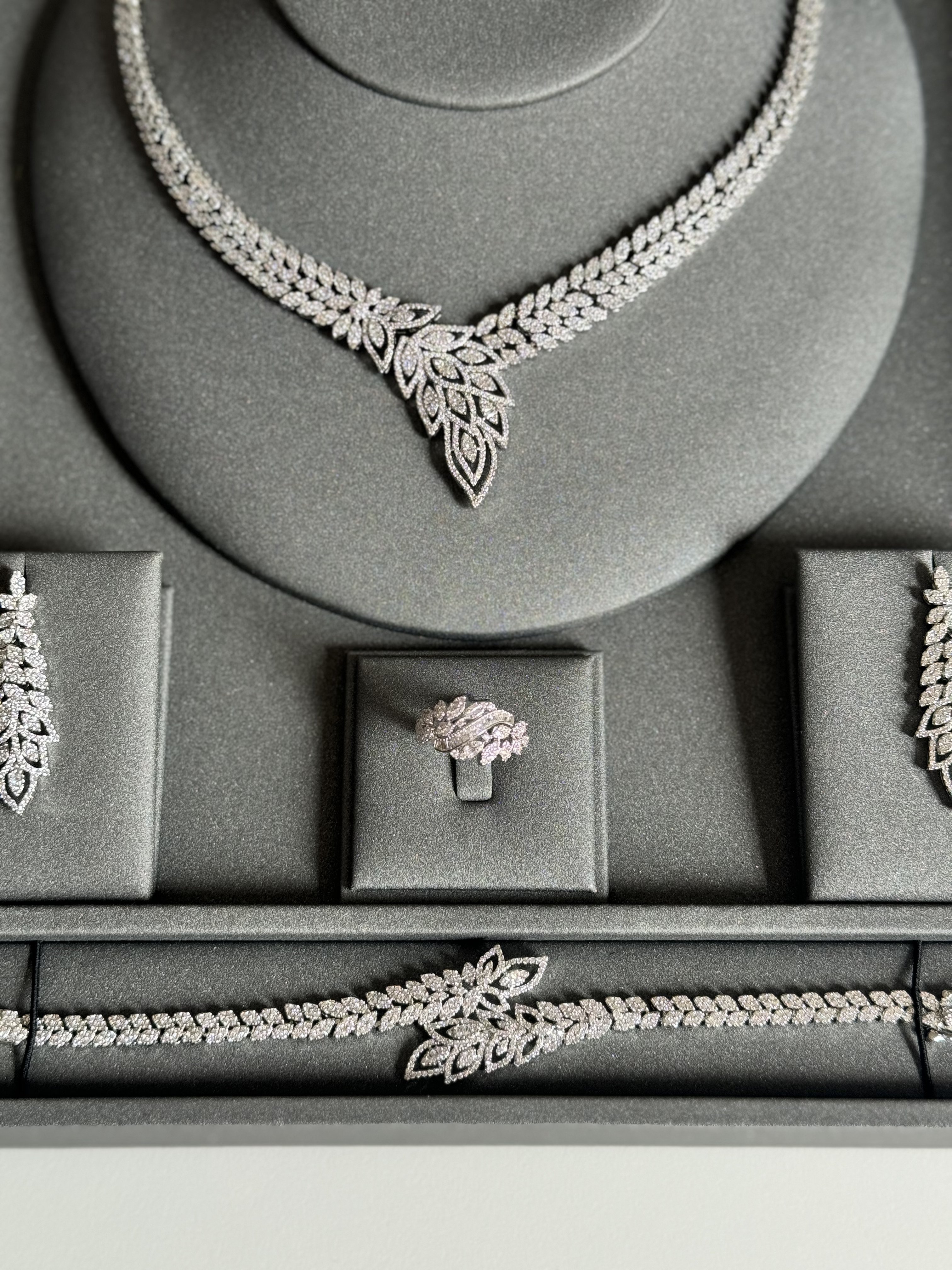 طقم إكسسوار بتصميم أنيق ولمعة فاخرة، يمنح إطلالة راقية تجعل الكثيرين يعتقدون أنه ذهب حقيقي عند ارتدائه.