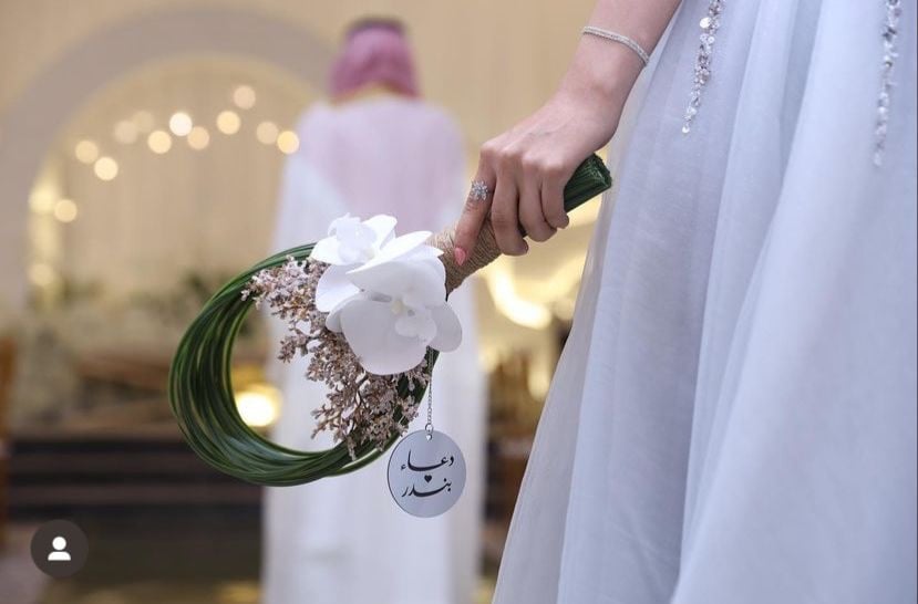 • يضاف مع المسكة تاق بإسم العروسين او الحروف ( حسب الرغبة )