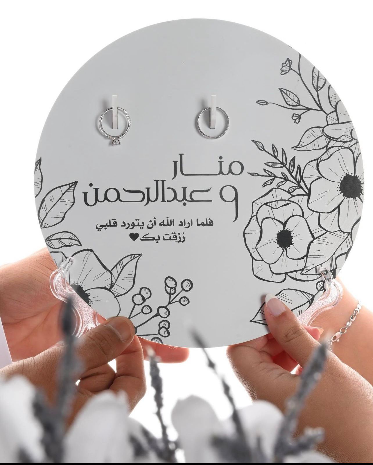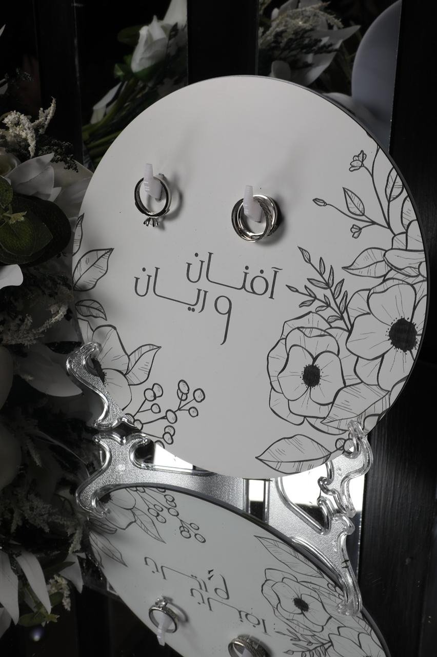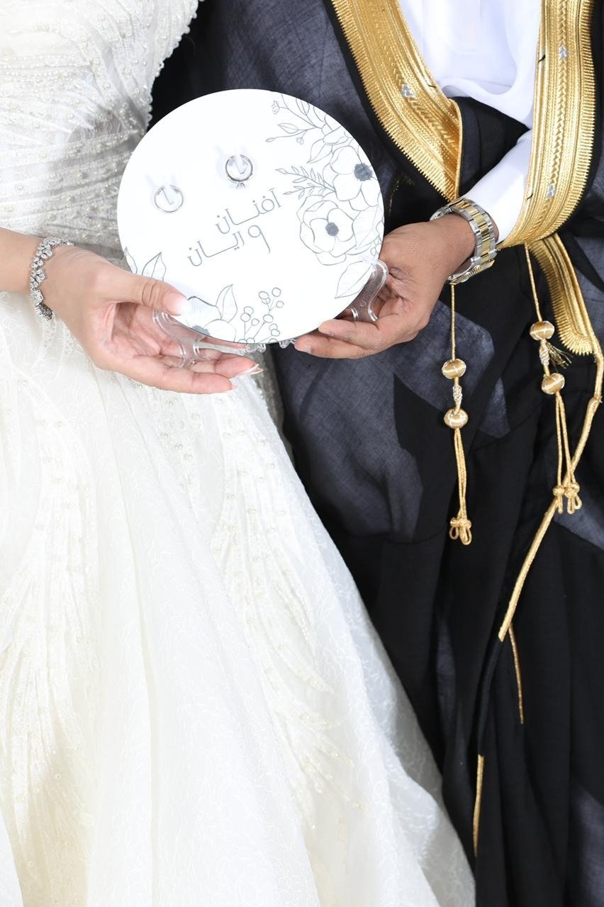 منقوش عليه اسماء العروسين .. فكرة مبتكره لتقديم و تلبيس الدبل فترة الخطوبة او حفلة الملكة و عقد القران .