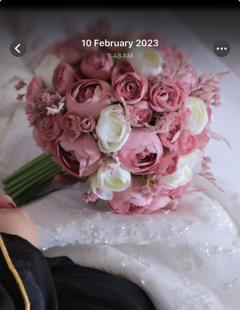 مسكه أنيقه وأنثويه ..مزيج من ورد البيبي بيونيا باللونين السكري و الزهري اللحمي مطعم باللاڤندر الوردي
