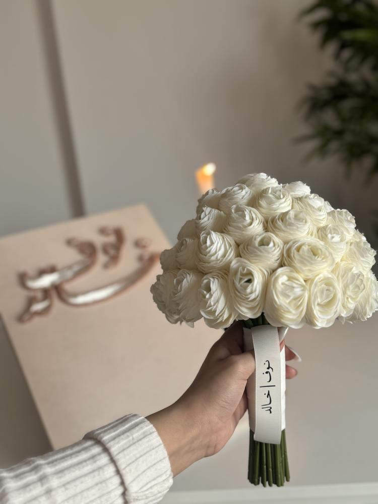 مسكه أنيقه وأنثويه .. و اضفت لمسة اللون السكري من زهور الرانكلوس الرقيقه والنادره