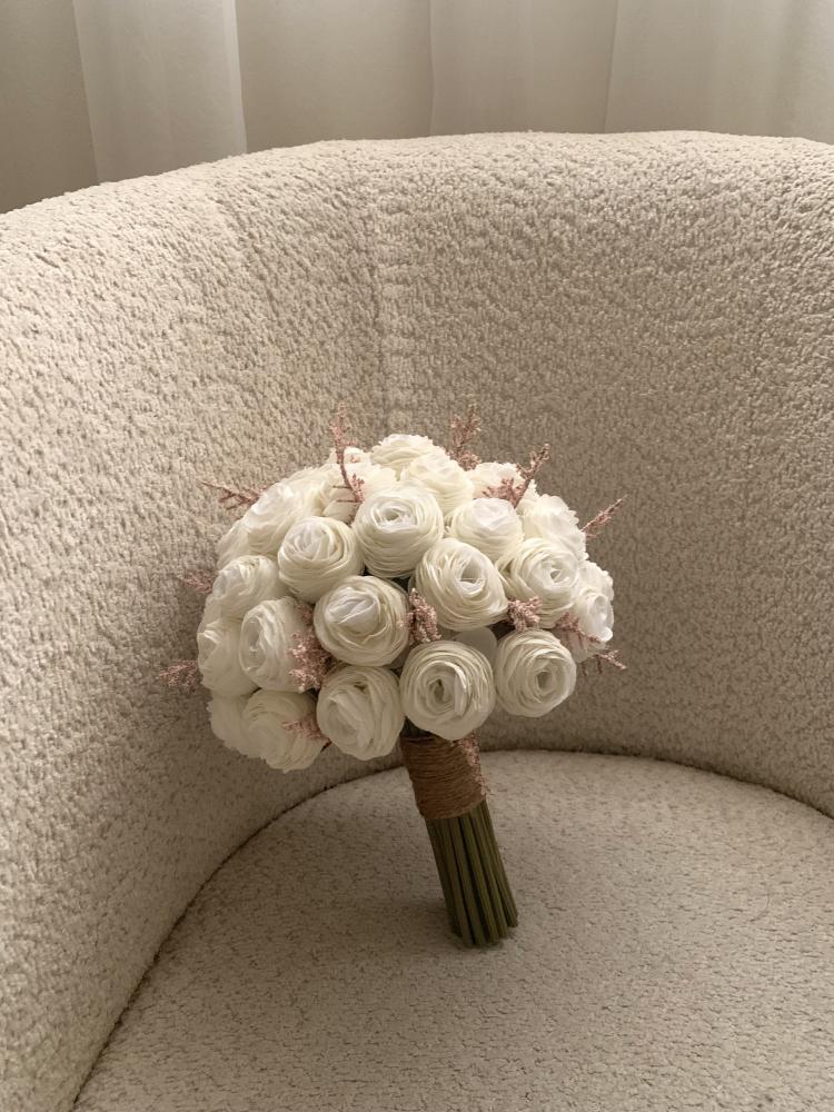 مسكه أنيقه وأنثويه ..متناغمه الالوان مزيج بين زهره الكالا و القرنفل اللحمي و ورد الجوري مطعمه بأغصان اضافت أناقه وتناسق للمسكه