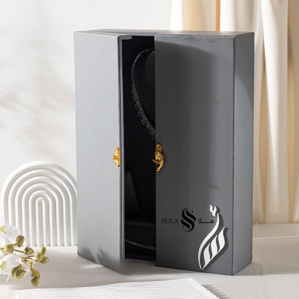 - بالامكان طلب صندوق جلدي فاخر مع الكتابة من خيارات الطلب ( الصندوق بقيمة اضافية ) .