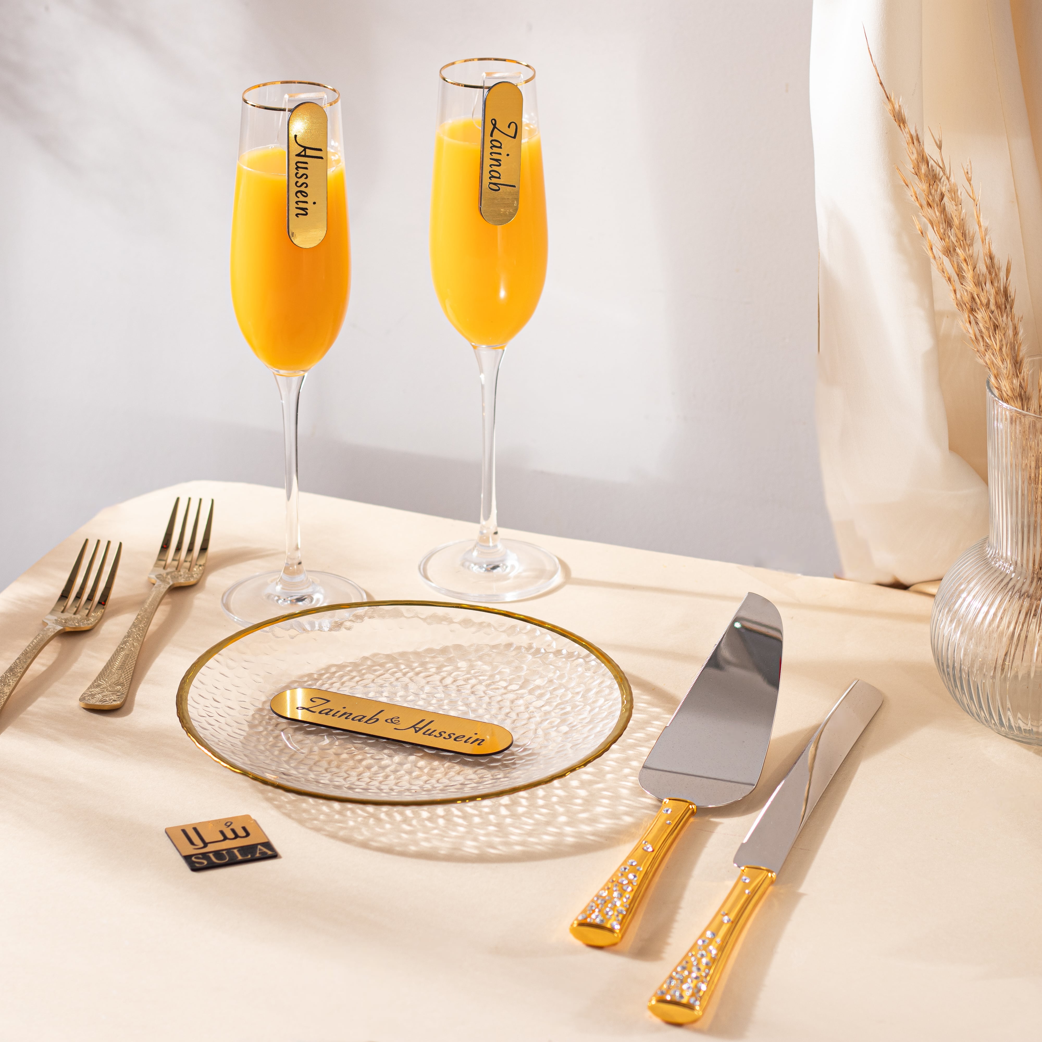 - يمكن الكتابة على السكين و حامل الكيك ( حسب الرغبة )